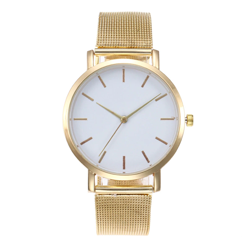 A chic, minimalist wristwatch that doesn't cost the Earth. Made using stainless steel, it has a high-quality construction and will last the wear. The rounded dial design is classic, while the weaved, metallic band adds uniqueness and elegance. The hour markers color-match the band, as does the hand, buckle, case and lug. Set the time easily via the crown dial. With adjustable pin-buckle fastening, you can secure the watch on your wrist by fastening the metal buckle through one of the various holes on the strap.