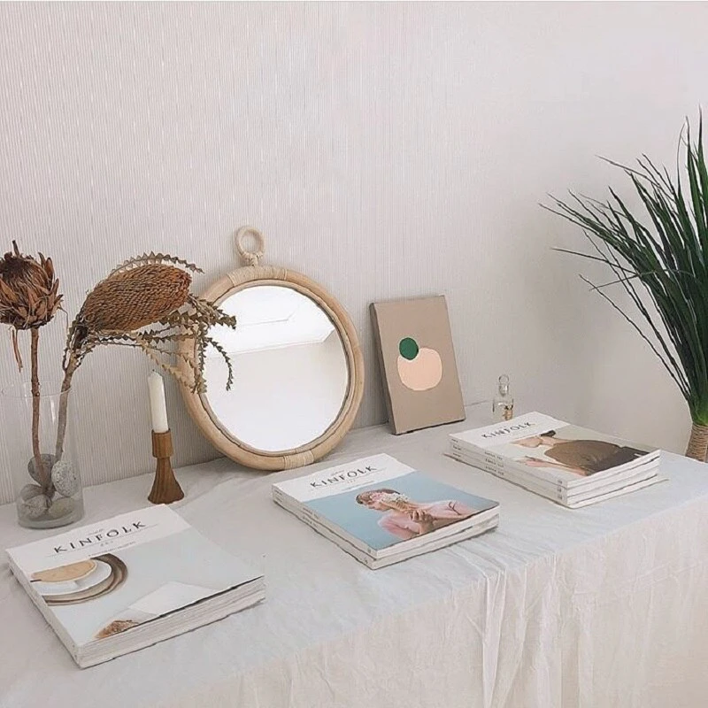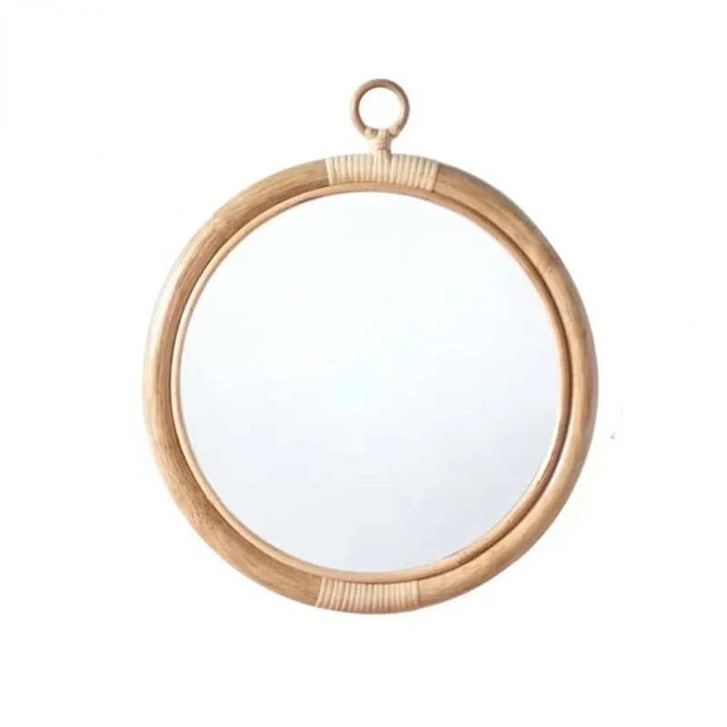 Small in size but large enough to display on your vanity and use as a makeup mirror, you can choose to hang the mirror from the round rattan loop on the wall or lean on a tabletop.