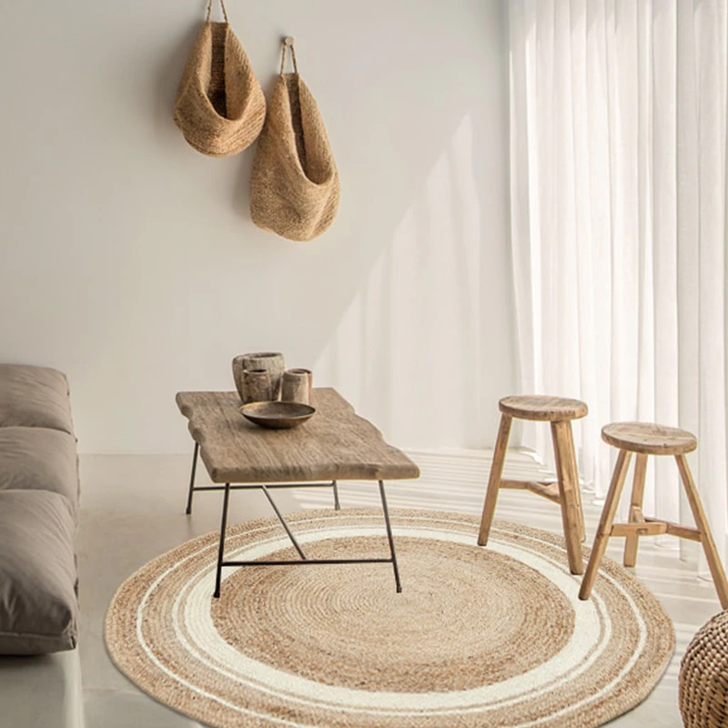 Bring the earthy feel of natural materials into your home with this round natural jute mat. Crafted from soft and durable jute fibers, this circular mat is a great way to add a touch of rustic charm to any room. Its versatile design makes it a lovely addition to your living room, bedroom, or even outdoor space. zwhether you're looking for a comfortable place to sit or a stylish accent piece, the natural texture and warm colors of the jute fibers will create a cozy and inviting atmosphere in your home.