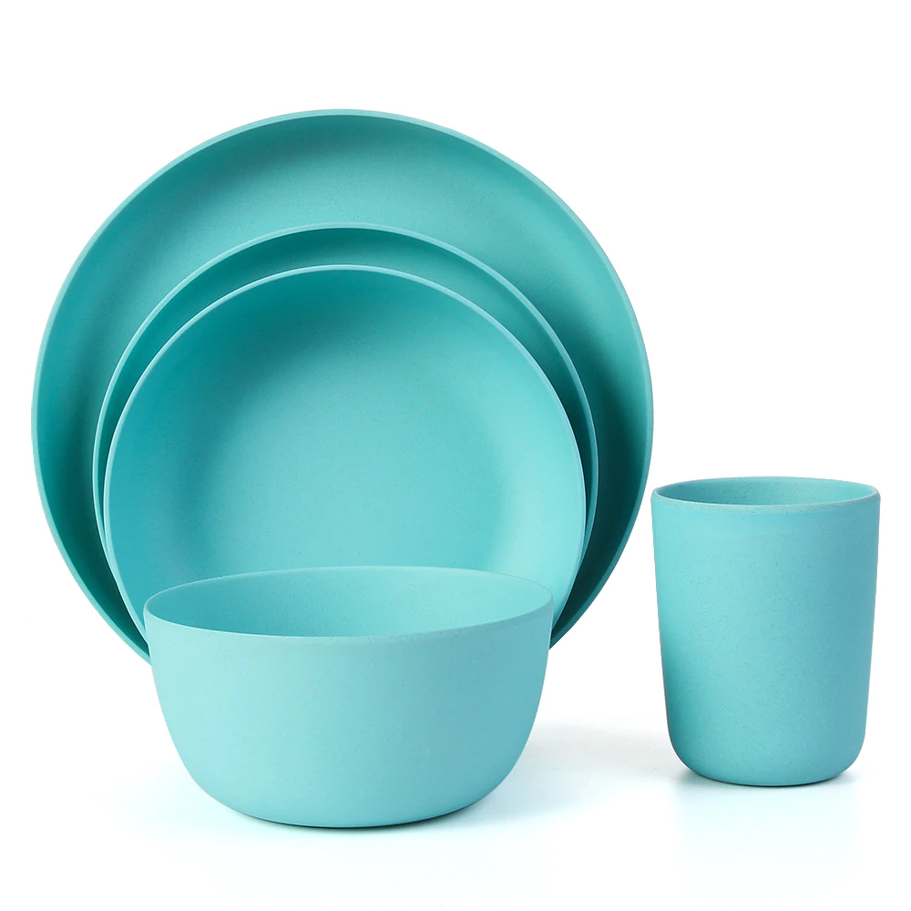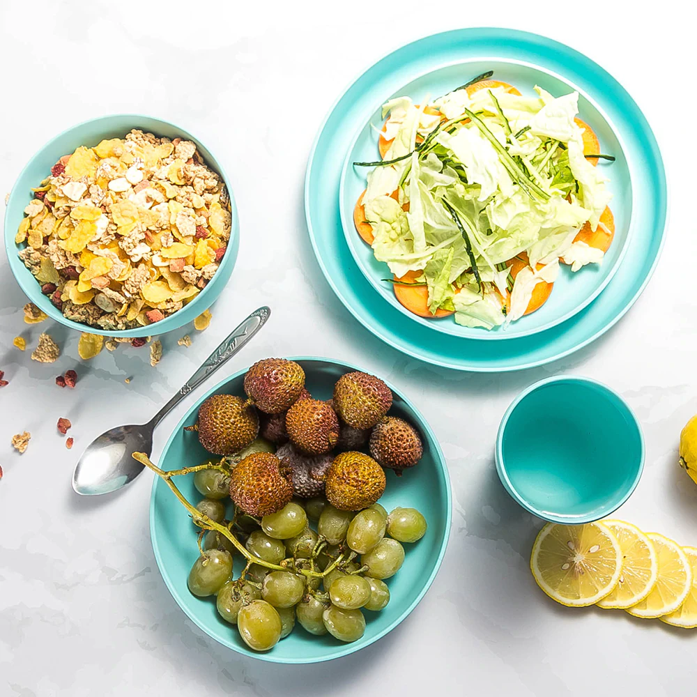 If you're looking for an eco-friendly and stylish way to dine, look no further than this scandi bamboo plate set. This set is made from bamboo fiber, making it a sustainable choice for your tableware. The 5 piece set includes a large plate, medium plate, salad bowl, soup bowl, and cup, ideal for one person, or purchase the 10 piece set which includes everything you need for two people. Ultra durable and super lightweight, this set is great for traveling and is also a great option for kids.