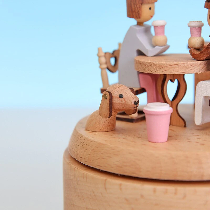 Experience the magic of music with this Scandi wooden rotating music box. With its unique rotating design, the music box plays a soothing melody while the wooden figurines spin gracefully around. Whether you're looking for a thoughtful gift or a special treat for yourself, this beautiful music box is sure to delight.