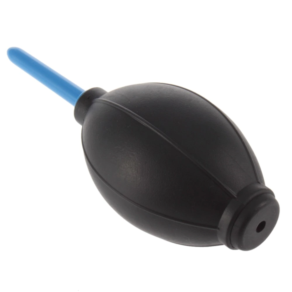 A dust blower for carefully cleaning your camera sensors, binocular and telescope lenses, musical instruments, devices and more. It features a hard plastic nozzle with a rubber bulb that produces airflow when squeezed. The bulb has raised lines to provide a comfortable and secure grip. This dust blower gently removes dust from delicate equipment without leaving residue or scratching surfaces.