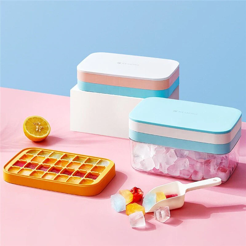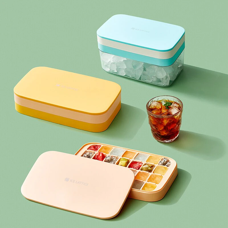 You can purchase as a singular tray with a lid, as two layers of ice trays with a lid or a single ice cube tray with lid and an attaching ice storage container, so you can make the most of your ice tray. Each tray measures 21.5cm x 12.5cm. Available in 4 different colours.