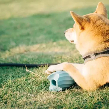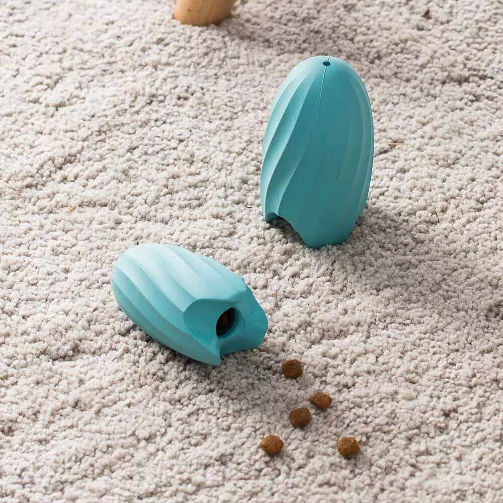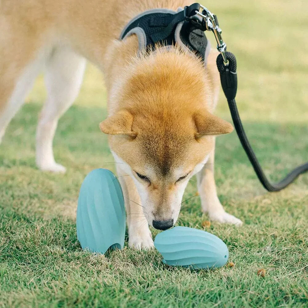 A reusable toy for your pup, that isn't your favourite shoe. Shaped uniquely with a wave-shaped bottom and textured exterior, there are many ways your dog can be occupied with this toy. The toy is firm so can be bounced and easily thrown. Available in two sizes: small and large. The small size is 53.5mm wide and 100mm tall, while the large size is 63.5mm wide and 117mm tall.