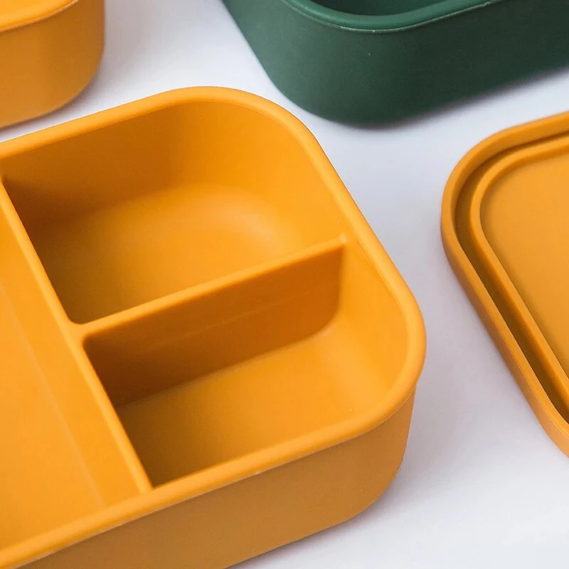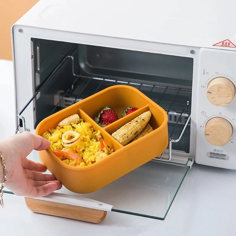 Made from food grade silicone, this container features 3 compartments for you to organise your food and snacks, it's dishwasher and microwave safe, and the silicone leak proof lid seals in freshness and prevents any spills or leaks.
