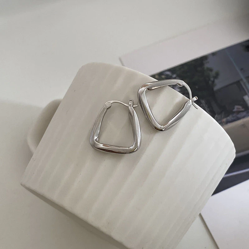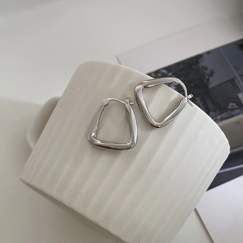 A dainty addition to your everyday look, these silver triangular earrings add a touch of minimalism and charm to any outfit. Made from 925 silver they're lightweight, allergy free and feature a clasp back so you can adorn them to your ears easily.