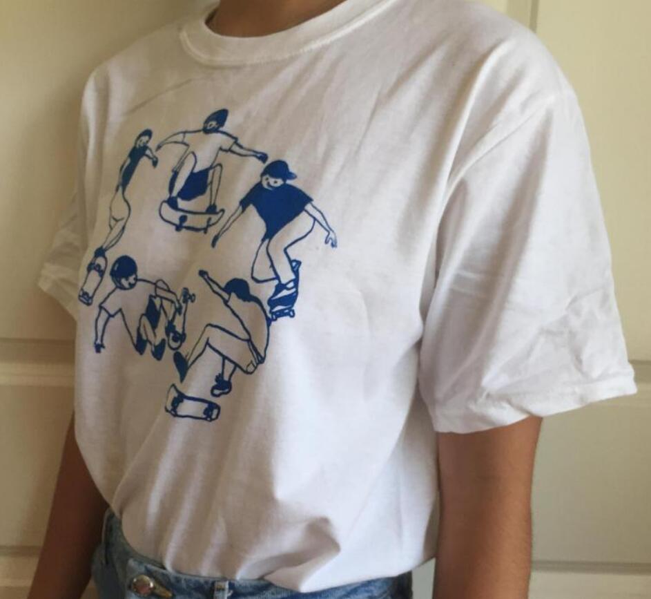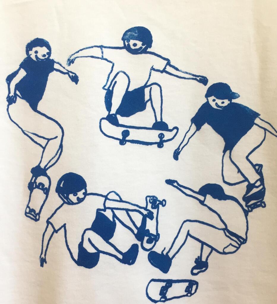 Soft, lightweight cotton weave with a dynamic blue skateboard print, pair with jeans for casual streetwear style.