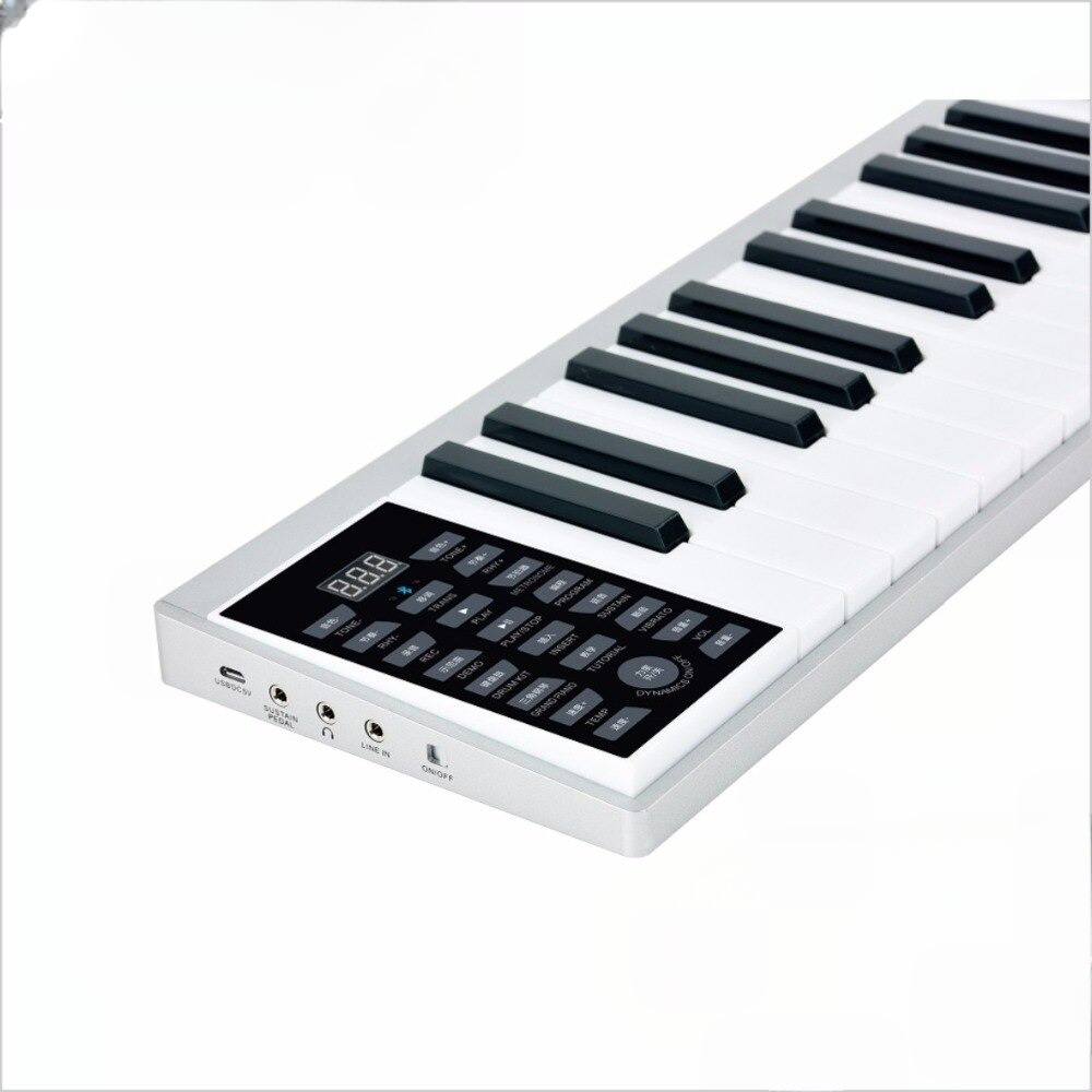 Elevate your music game with this sleek and stylish slim USB 61 key midi keyboard. Designed to be ultra-thin and portable, this keyboard is perfect for musicians on the go. With 61 high-quality keys, you can play any melody with ease. The keyboard also includes smart electronic piano features that allow you to customize your sound to your liking. Choose from 200 different tones and over 100 demo songs to create the perfect musical atmosphere. Whether you're a beginner or a seasoned professional, this slim midi keyboard is the perfect addition to your music collection.