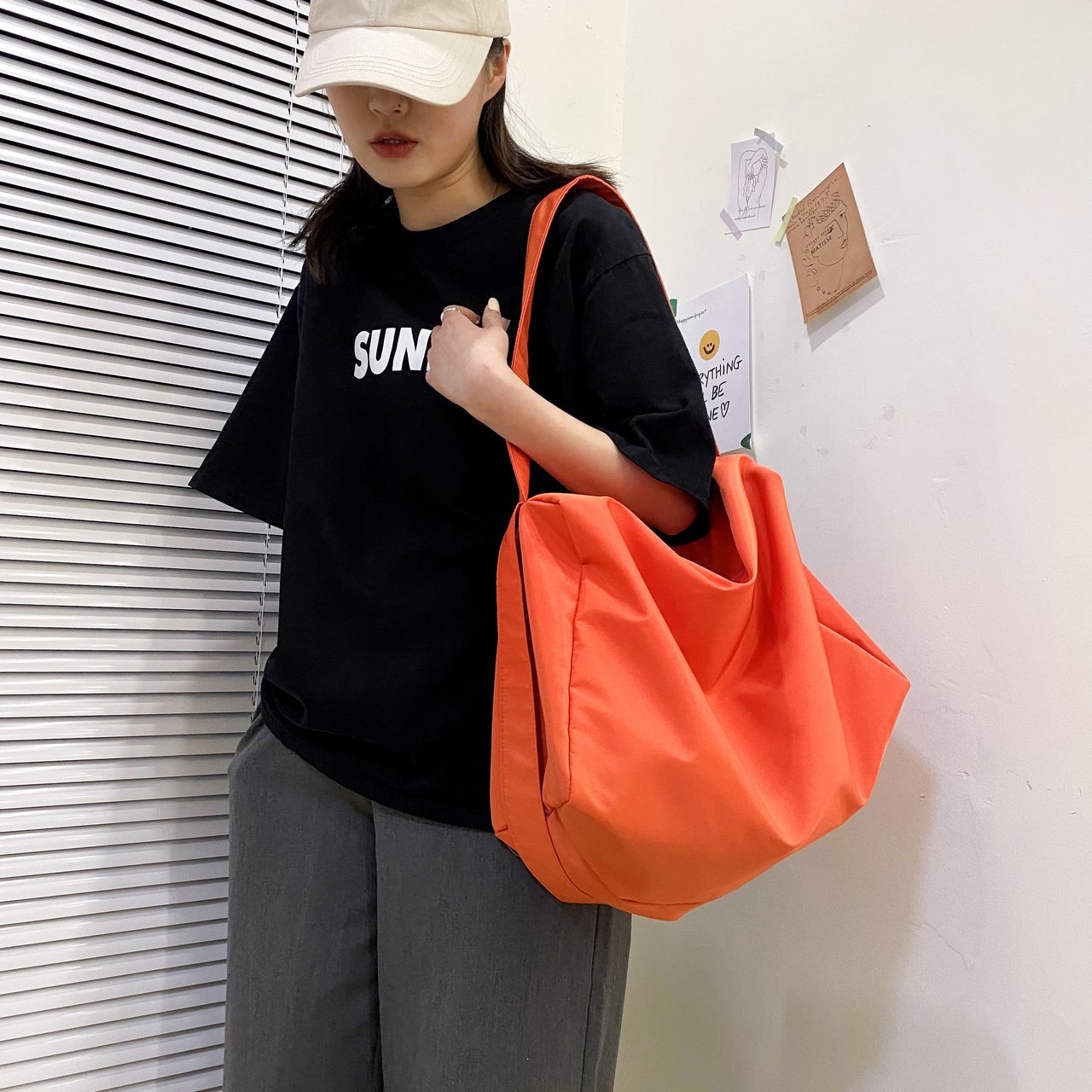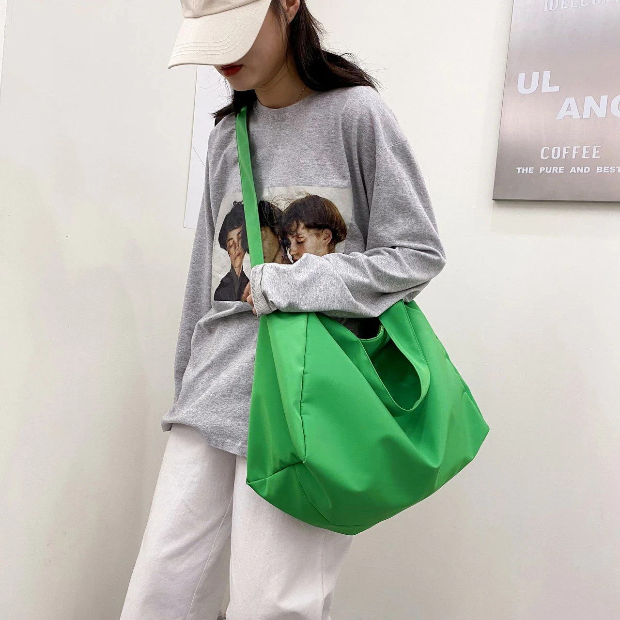 It comes with a wide strap that sits snugly on your shoulder and a wide zip-up opening to easily access your items. It's slouchy and relaxed by design, providing you with generous storage space for all your valuables. Understated in style, it's suited to match any outfit and occasion. Perfect bag choice when going to the gym, packing for a roadtrip, or heading to a friend's place for sleepover.