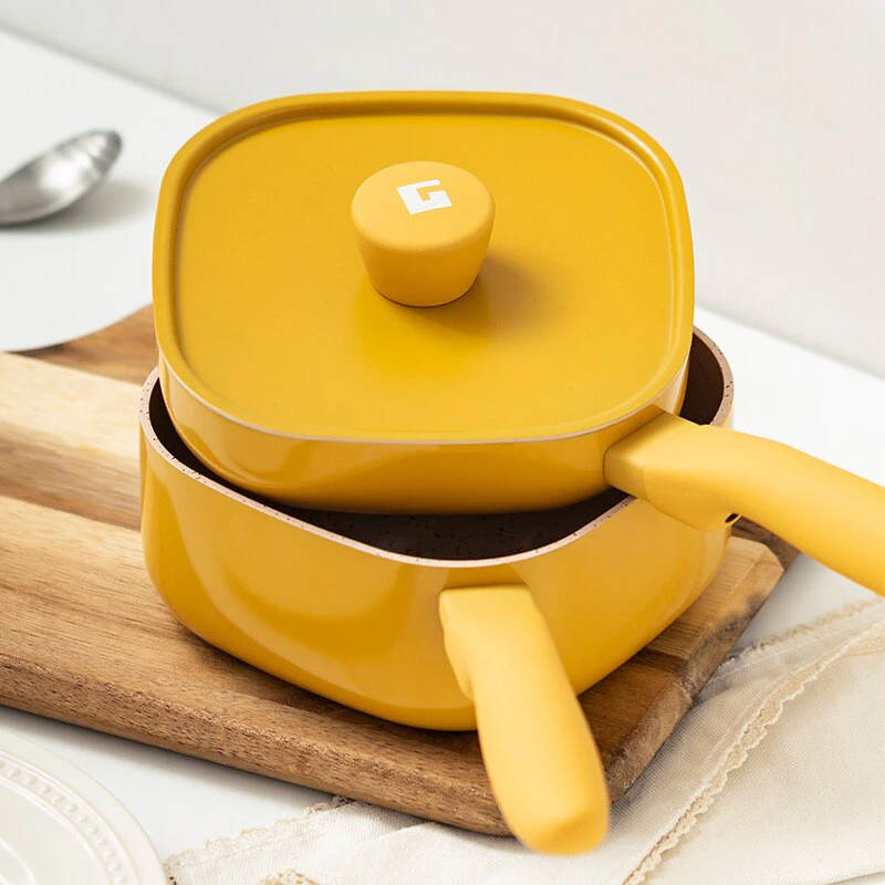 Non-stick cookwares are always a great addition to your kitchen tools, like these small square pots and frying pans. They surely add a pop of colour in your cupboard, made of sturdy material and they're easy to clean up too. The size is perfect for small kitchens and apartment living, and it is perfect when you're making a bunch of small meals at the same time.