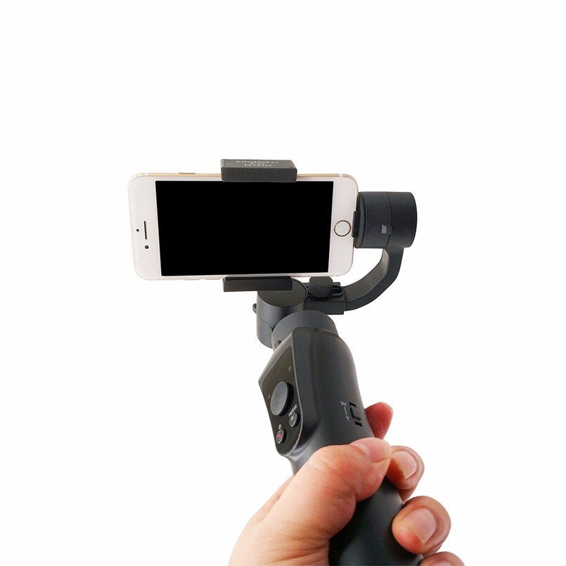 This gimbal stabilizer will make your videos look professional, at a low price. 2 hours of charging time is required for about 6 hours of filming. With built-in 4.0 Bluetooth, simply press the shoot button to start filming. Adjust the zoom and lens pitch by pressing the button 1 of 4 directions. Compatible with GoPro 4, 5 and 6 and with phones that have a 55-88mm width. Shoot horizontally or vertically.