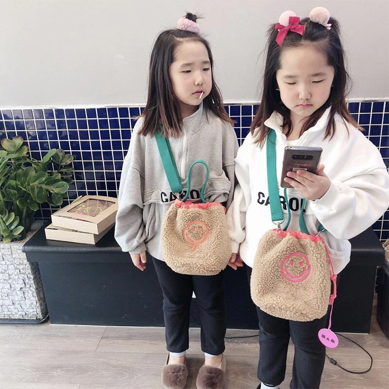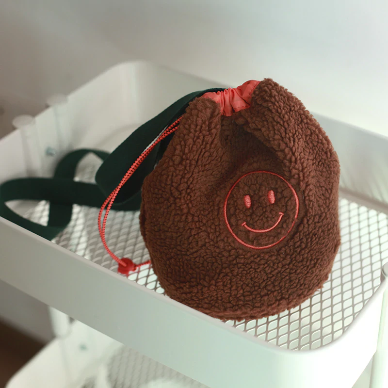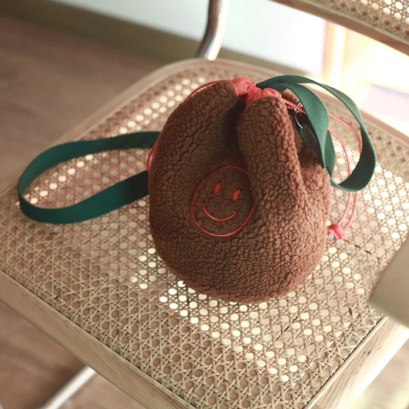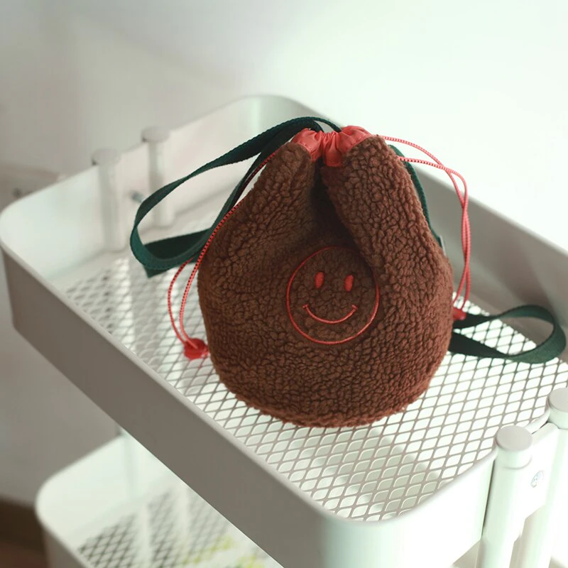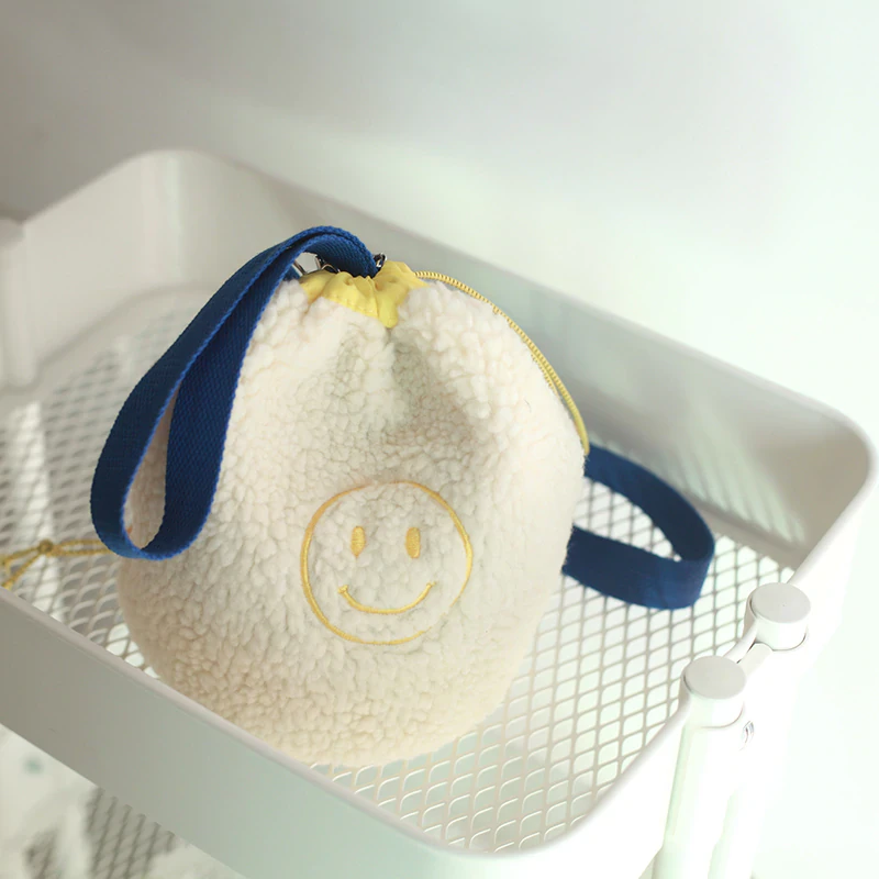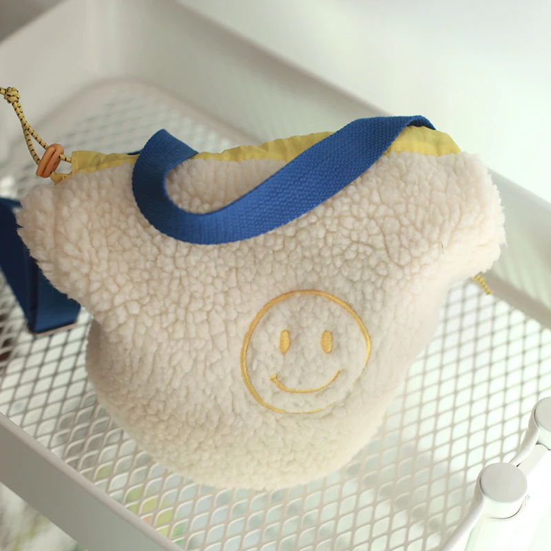 Features a smiley face design on the front and a shoulder strap for easy carrying.