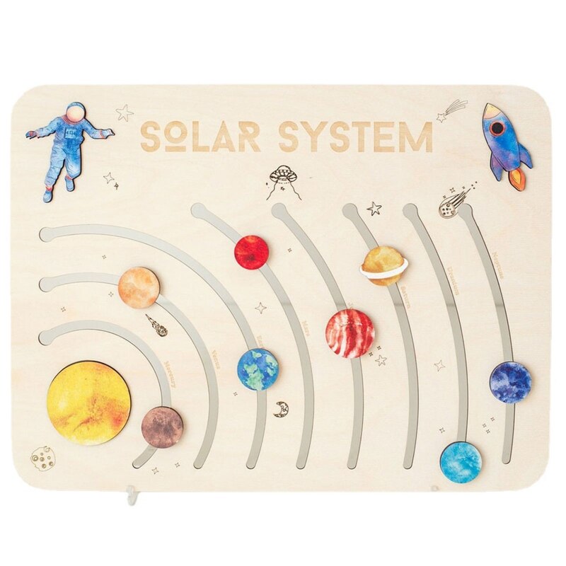 An educational tool and fun toy in one, this solar system puzzle is great for teaching kids about the planets that orbit around the earth and the sun. Made from wood, it has labeled and moveable parts that allow kids to move the planets around so they can visualise where each planet is located and have fun placing them where they currently are in orbit.