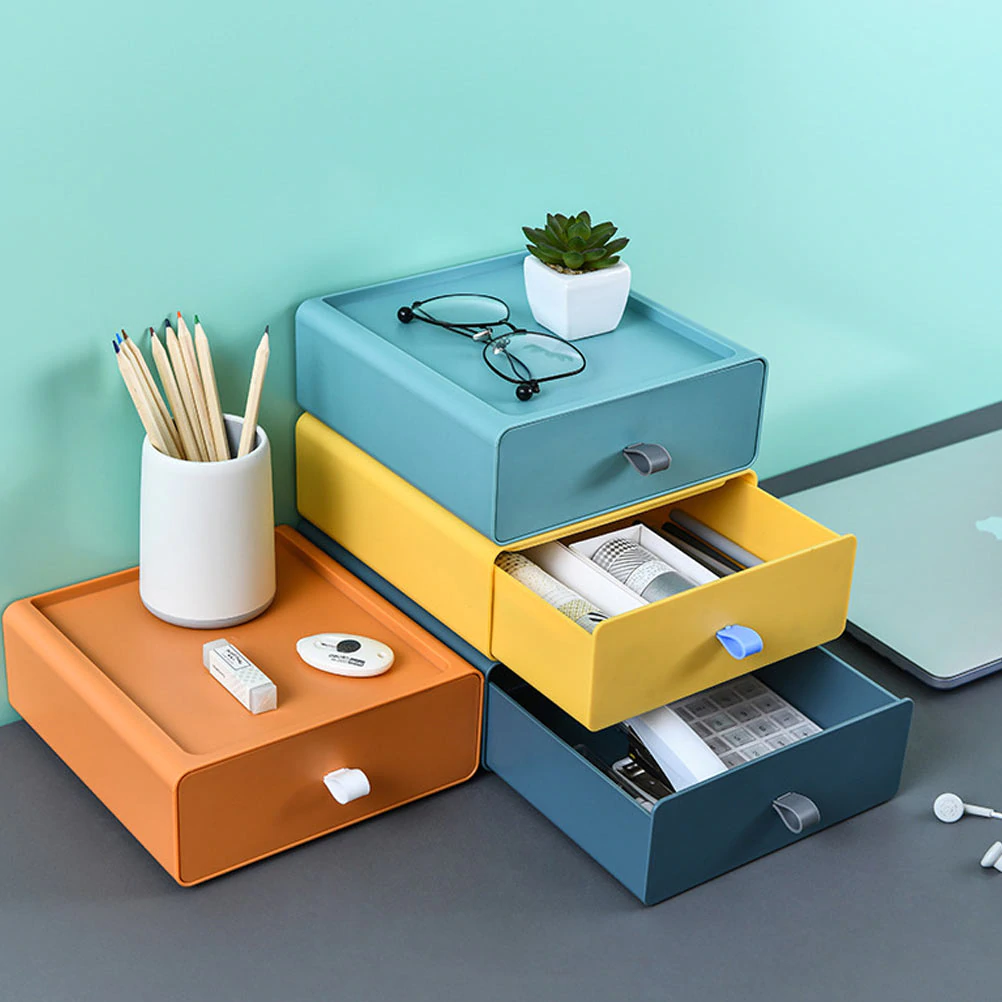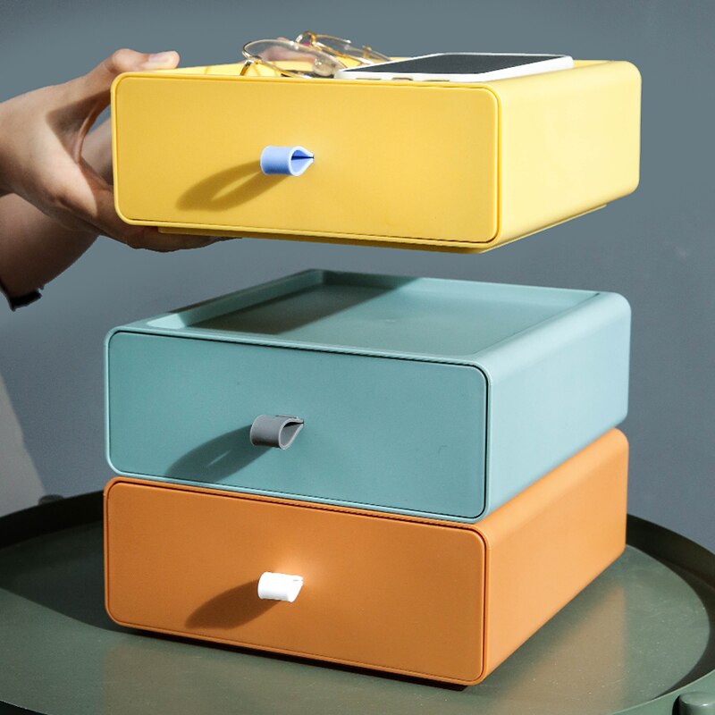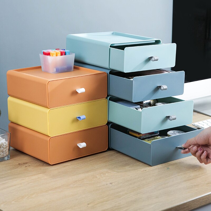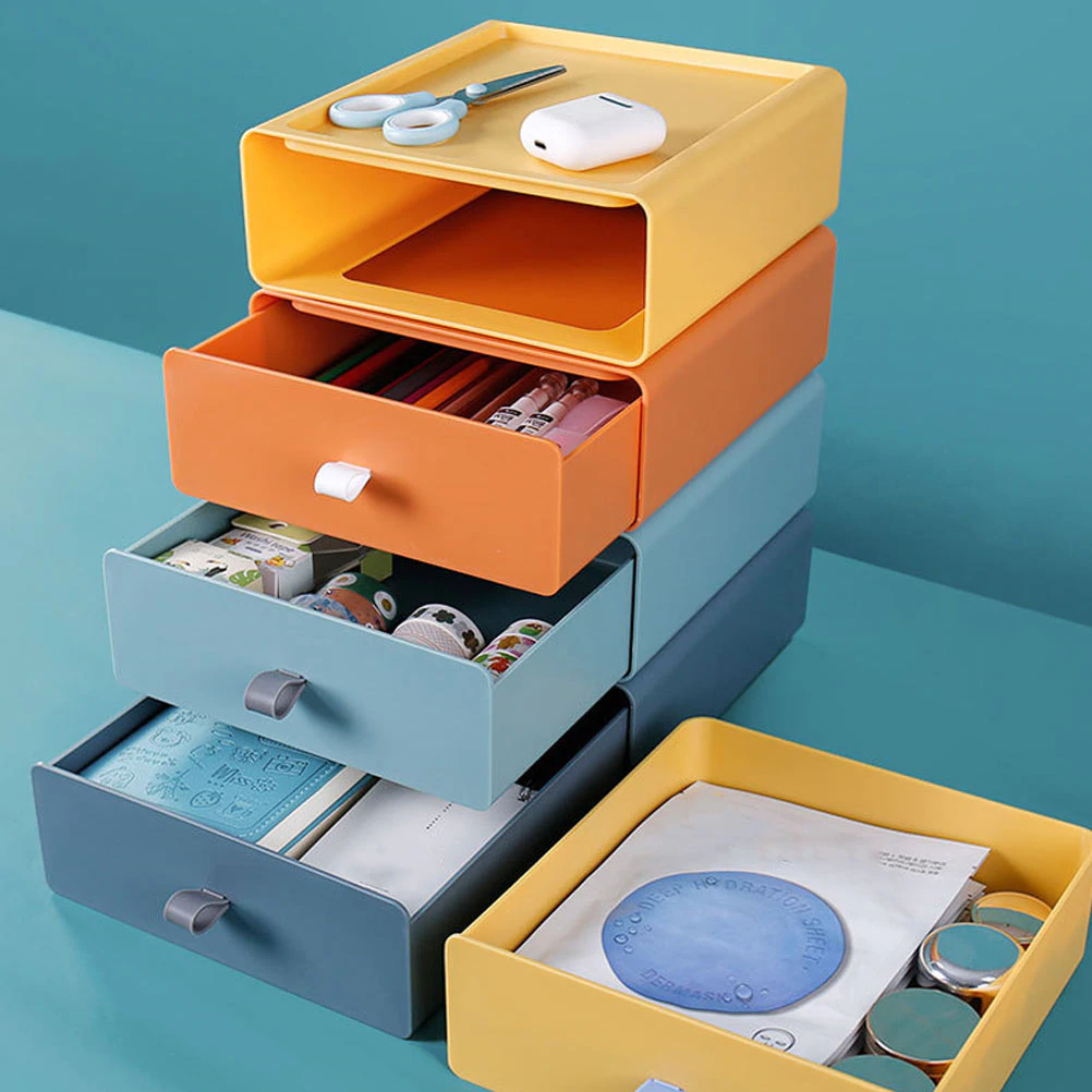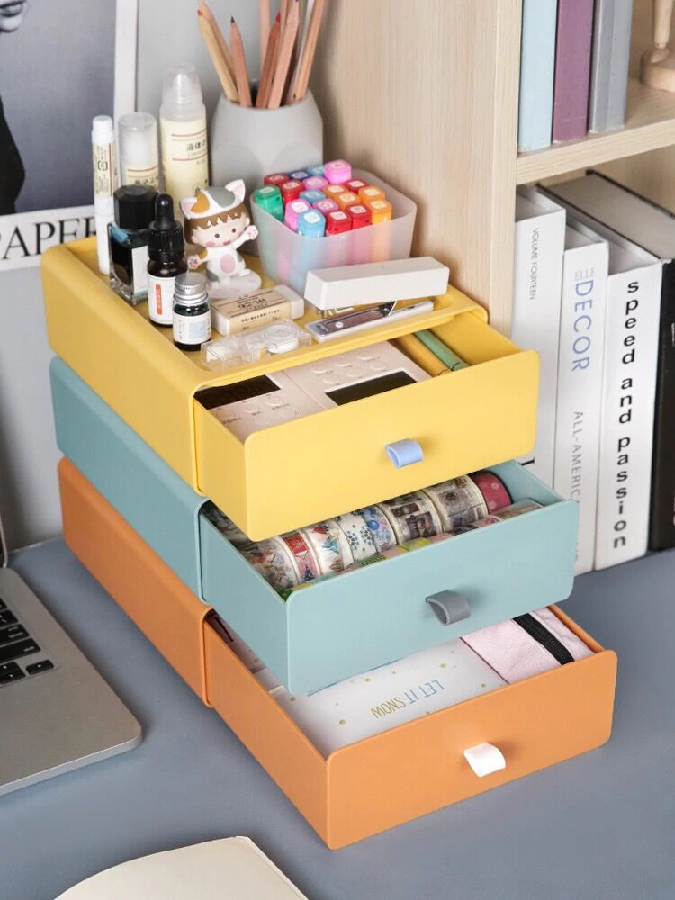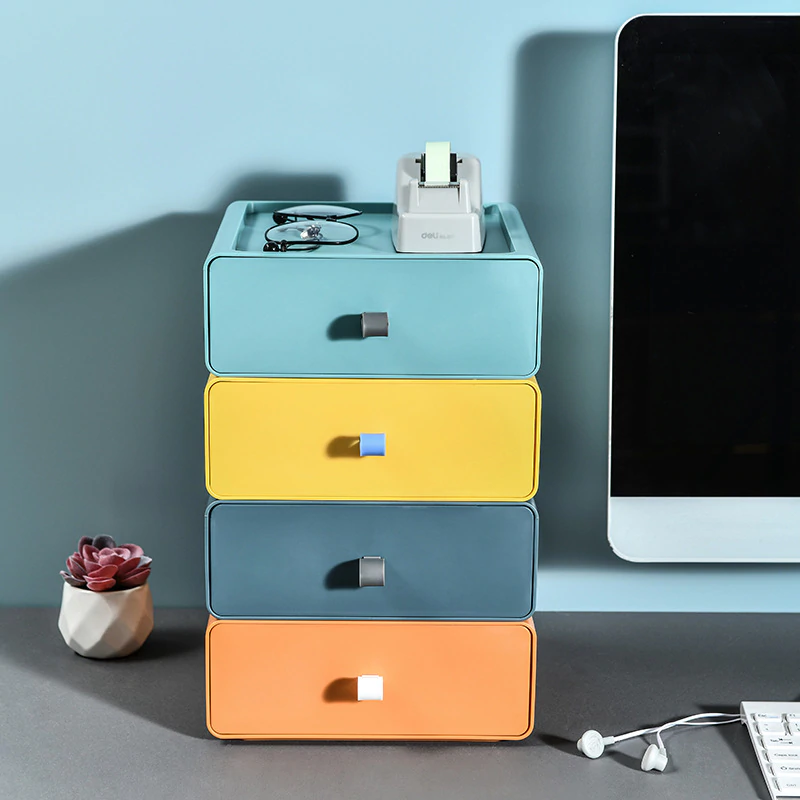 Fun and stylish, these color block drawers make the perfect storage space for your pens, cables, sticky notes, stationery, and other supplies.