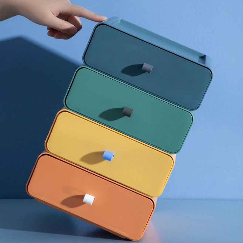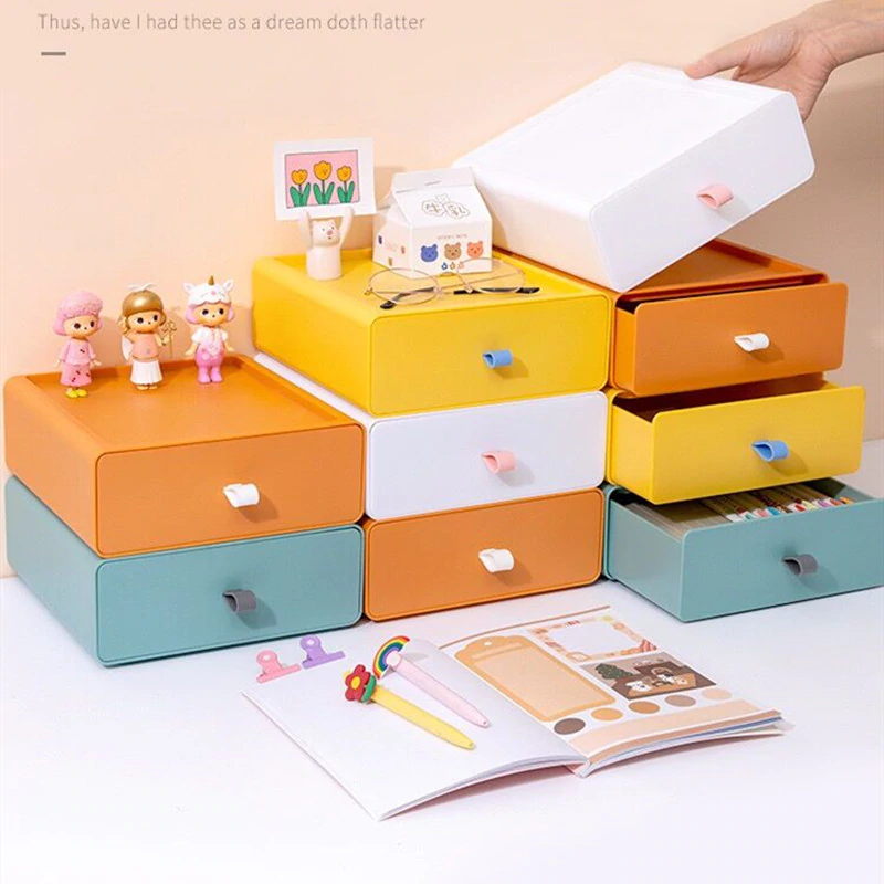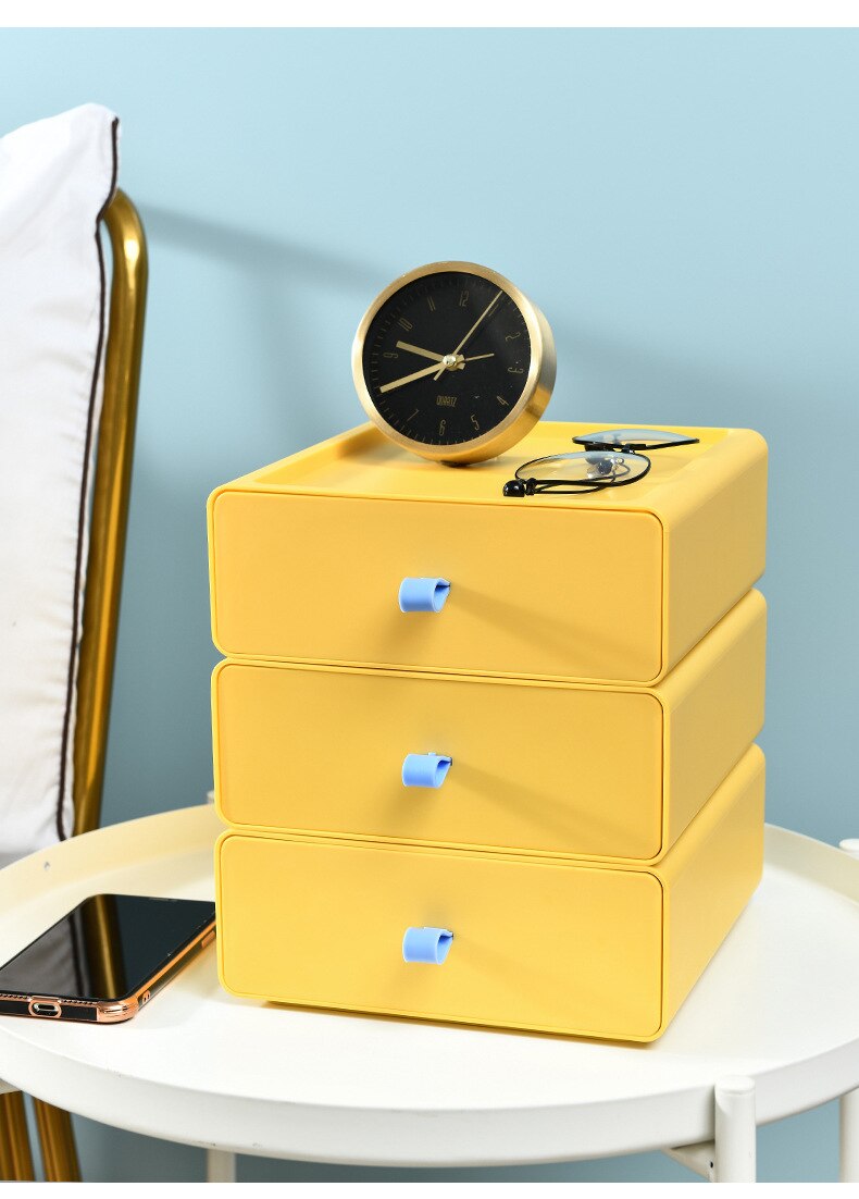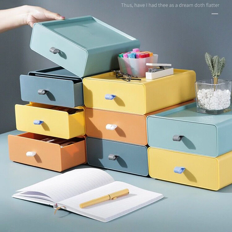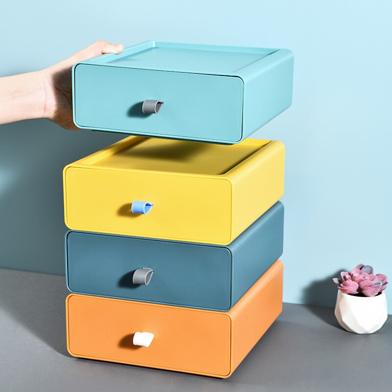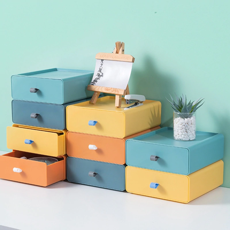 Fun and stylish, these color block drawers make the perfect storage space for your pens, cables, sticky notes, stationery, and other supplies.