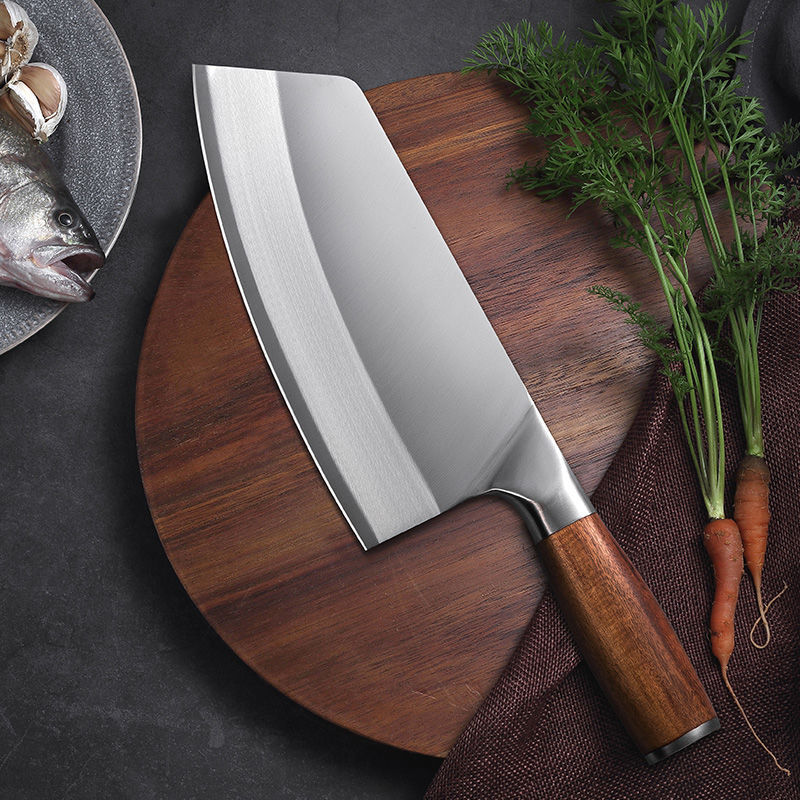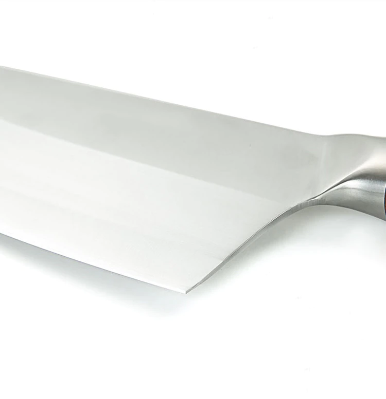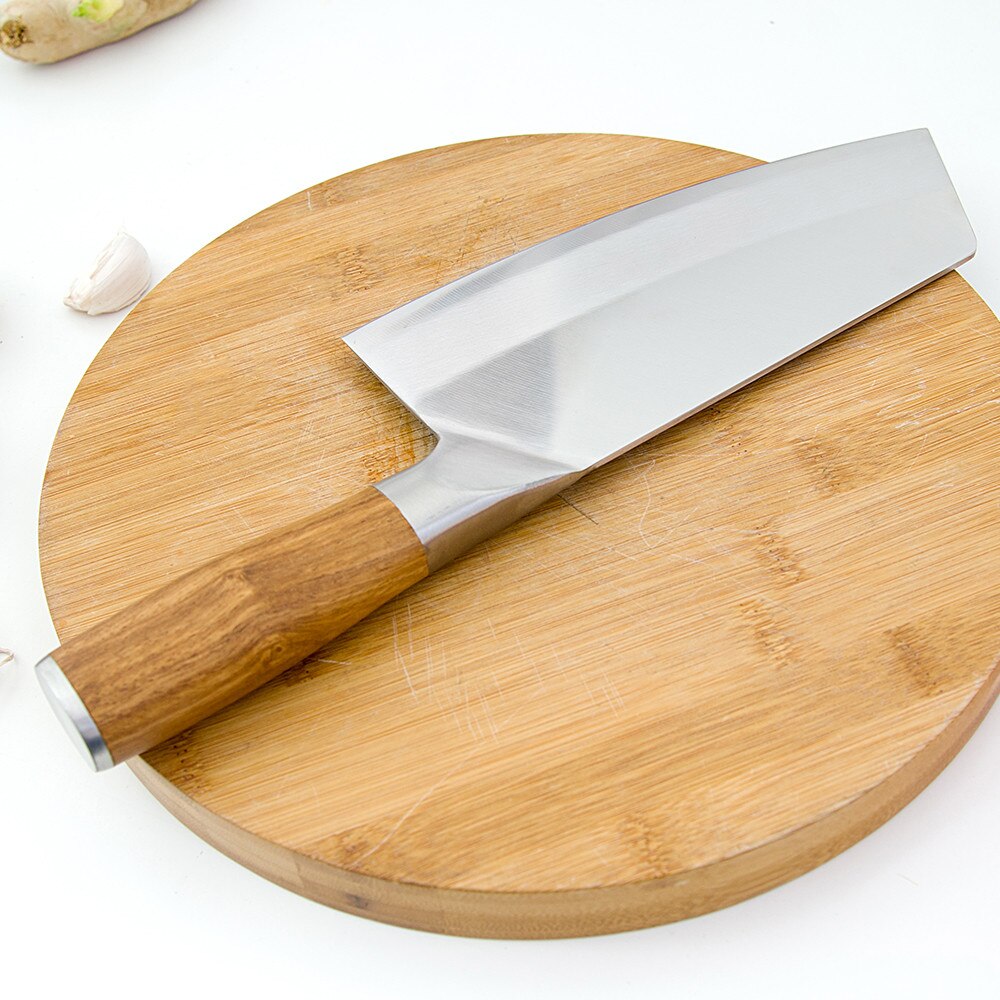 When you're looking to invest in high-quality cooking tools, look no further than this Stainless Steel Chefs Knife. This thin blade is perfect for slicing thin cuts of meat and vegetables, but can also be used to chop larger ingredients with ease. The razor sharp stainless steel blade will stay sharper for longer than most other knives on the market. Comes with with a wooden handle for a comfortable grip in hand!