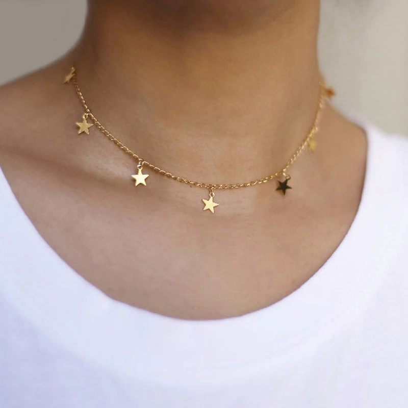 Looking to add a dainty accessory to your collection? This beautiful chain necklace features 7 small star pendants that sit along your neck in a choker style. A stylish and eye catching accessory for both daytime and evening wear, and a lovely memorable gift idea.