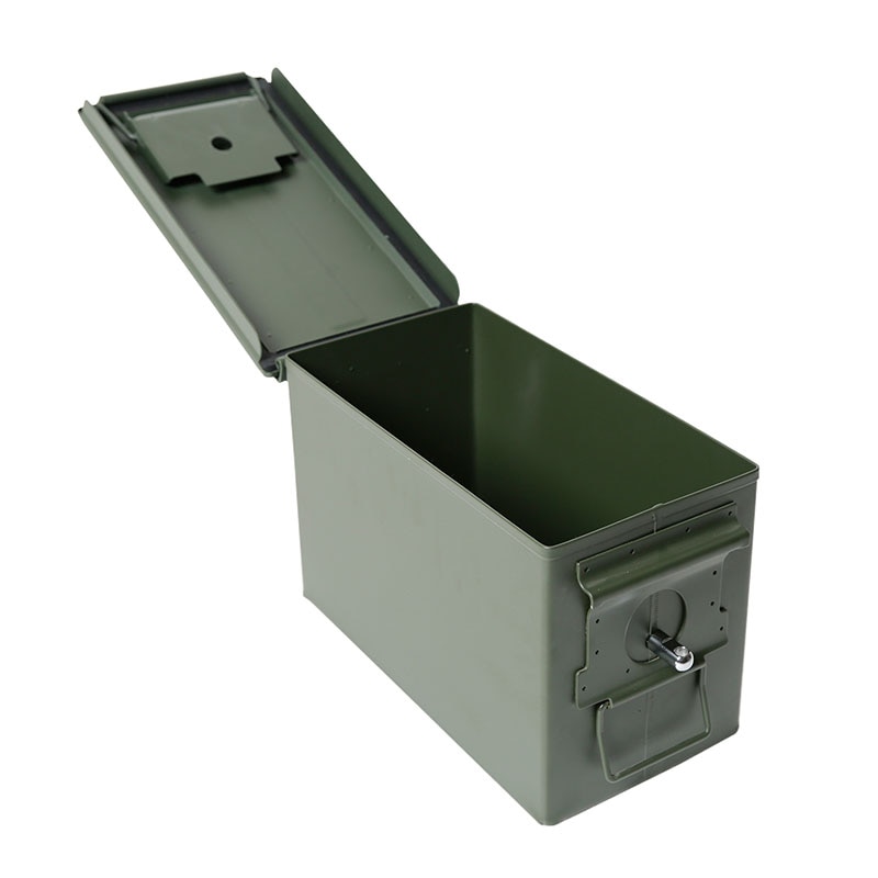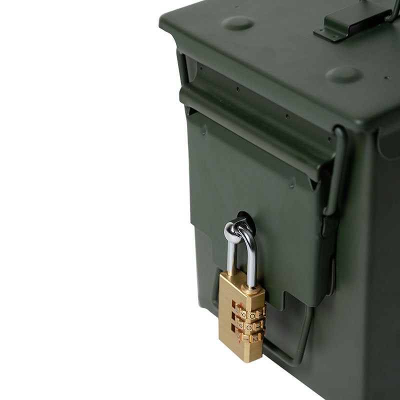 Store and transport your ammunition with ease and style with this steel painted ammo box. This box features a military and army inspired design that's perfect for outdoor enthusiasts, hunters, and collectors. Made with heavy-duty steel material, it ensures durability and long-lasting use. It's lockable with a padlock or screw, adding an extra layer of security to your ammo. With the capacity to hold 50 caliber ammunition, you can rest assured that you'll have enough space to carry your supplies. Plus, it's waterproof for added protection against the elements. Whether you're heading out for a hunting trip or just need a secure storage solution, this ammo box is a great option.