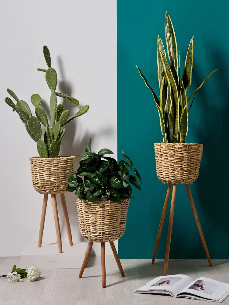 This versatile Straw Basket Plant Stand can be used anywhere in your home. It features a bamboo frame that provides the perfect backdrop for any living plant or decorative item, while also doubling as a storage basket to hold anything from magazines to shoes. Keep your plants up off the ground and within easy reach with this elegant wicker basket stand. The stand is made from natural bamboo and finished in a light honey hue, while the interior storage basket can be used to store potting soil and tools.
