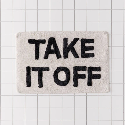 Get ready for a clever, carefree bathroom experience with this Take It Off/ Freaky Clean Bath Mat. This amusing bath mat makes for a good laugh, and a great place to wipe your wet feet. This mat is sure to make your guests snicker. And, with a soft, absorbent construction, you’ll leave the bathroom feeling refreshed.