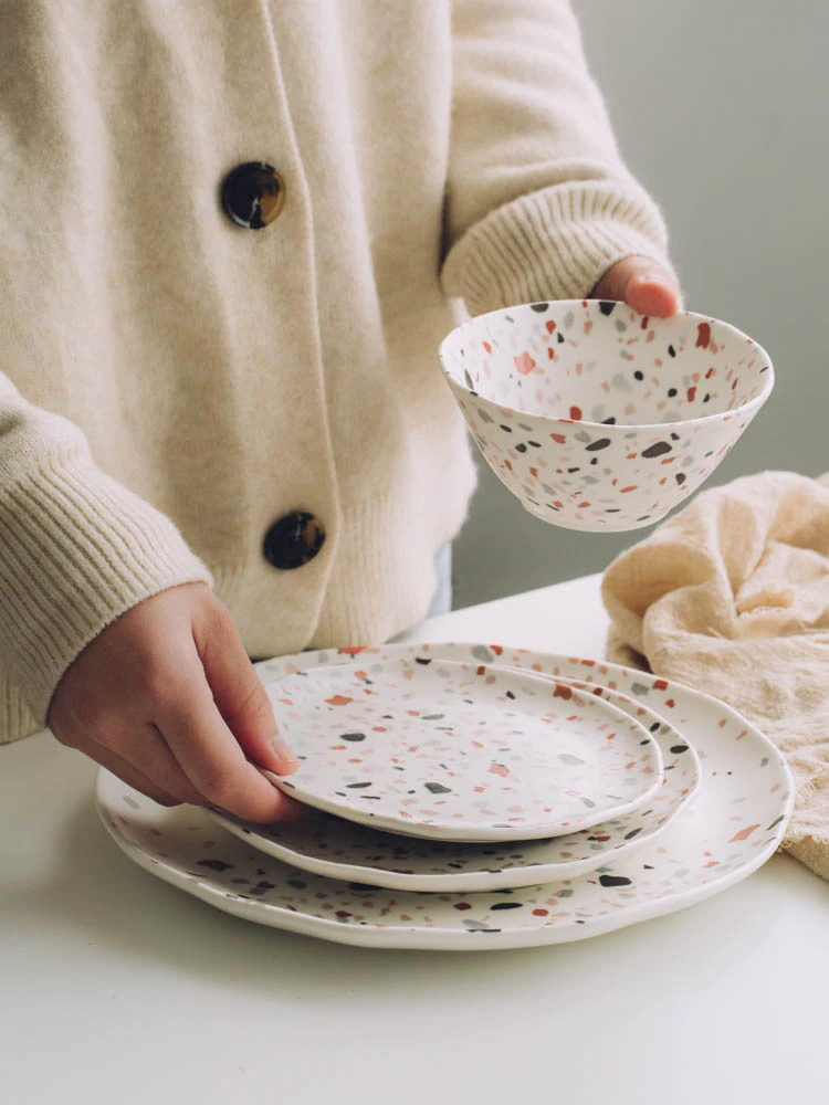Perfect for any mood, style, season and occasion, check out this beautiful range of colourful terrazzo dinner plates and bowls.