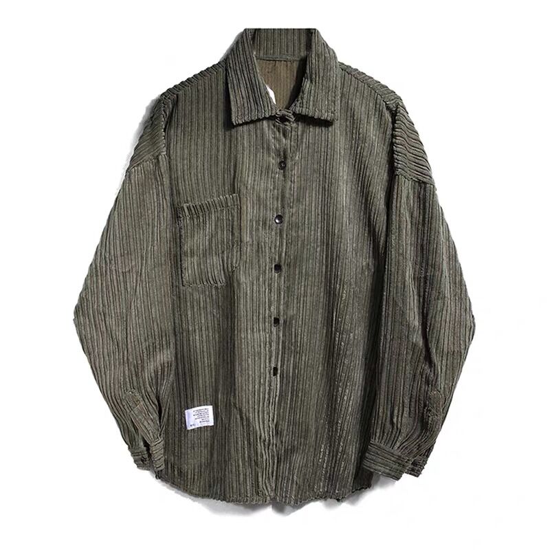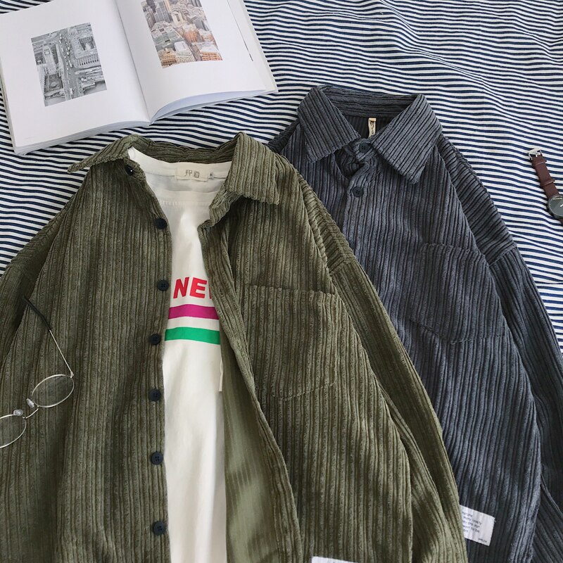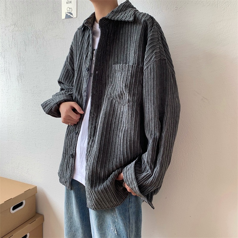 Autumn approaches quick. Prepare for the season with some staple pieces like this oversized corduroy shirt. Find your style with an olive or grey color. Pair with a hoodie underneath for a cozy fall fit.