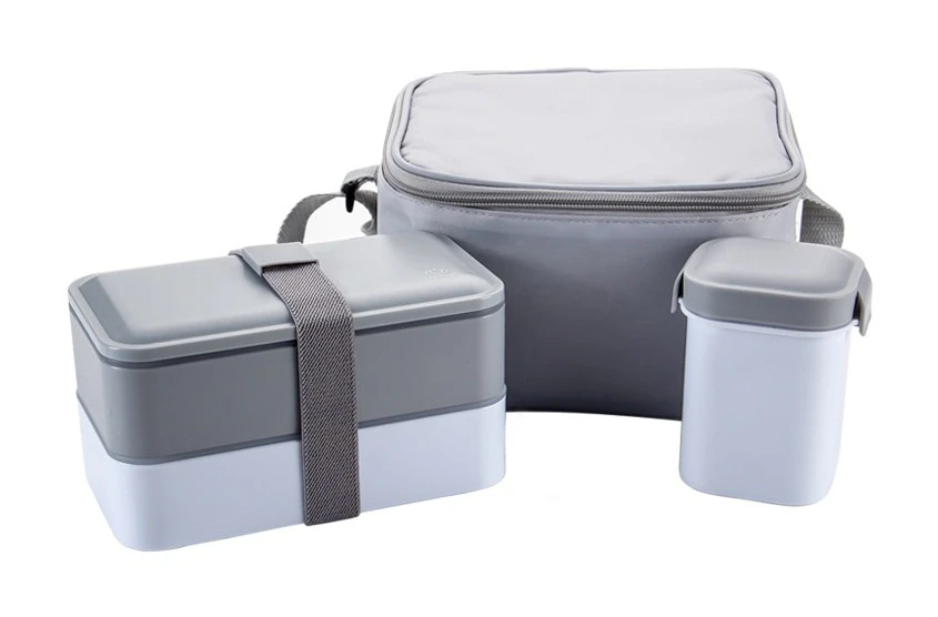 Includes a lidded cup that can hold soup, yoghurt, smoothies and more, a double layer bento lunch box and a handy insulated cooler bag to keep your food cold or hot.