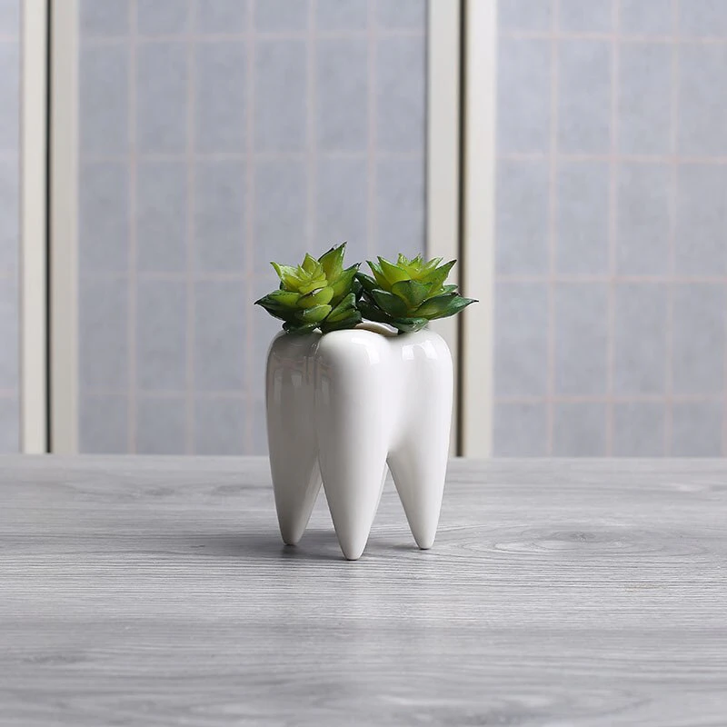 Add a quirky touch to your home decor with this tooth-shaped succulent pot! Made from ceramic material, this pot is perfect for showcasing your favorite succulent plant. The unique design will add a fun and interesting element to any room. Whether placed on a windowsill or on a desk, this pot is sure to brighten up your space and bring a smile to your face.