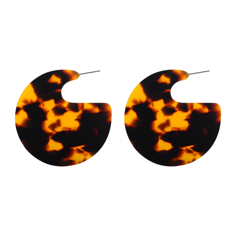 Crafted with care, these earrings feature a beautiful tortoiseshell pattern, adding a touch of sophistication and glamour to any outfit. The lightweight acrylic material ensures comfortable wear throughout the day, while the hoop design adds a trendy and modern twist. Whether you're heading to the office or a night out with friends, these earrings effortlessly complement any ensemble.