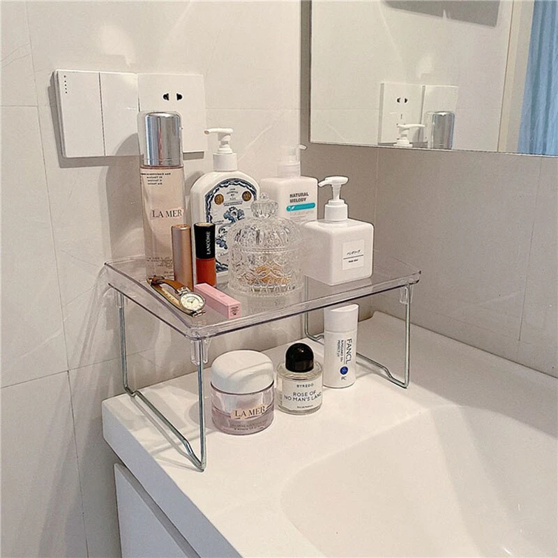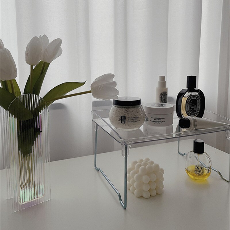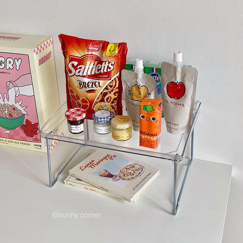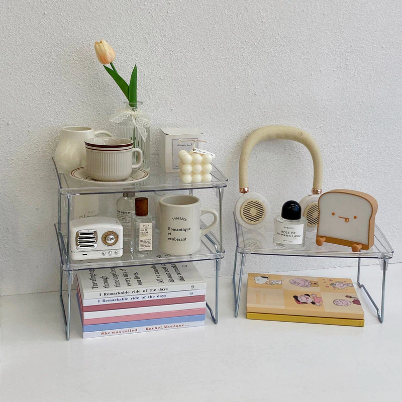 A versatile and stylish solution for organising and sorting your bits and pieces on your desktop to maximise space and create a unique display, this transparent desk shelf is a simple but functional addition to your space. Made from acrylic, this lightweight shelf folds out and can be stacked on top of another to create a multi-tiered shelf to stack your books, store your stationery or display your favourite items.