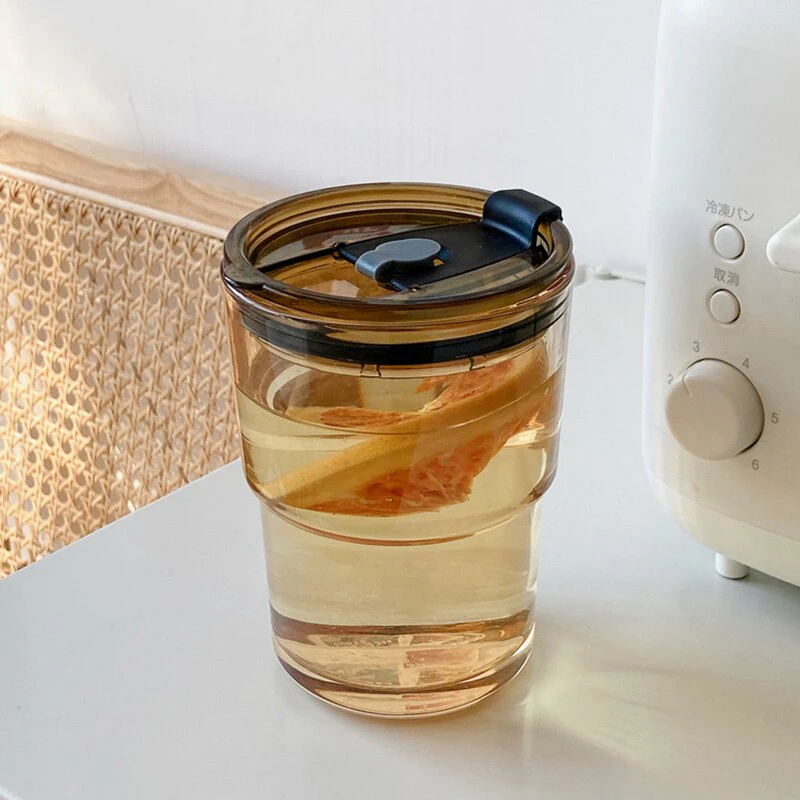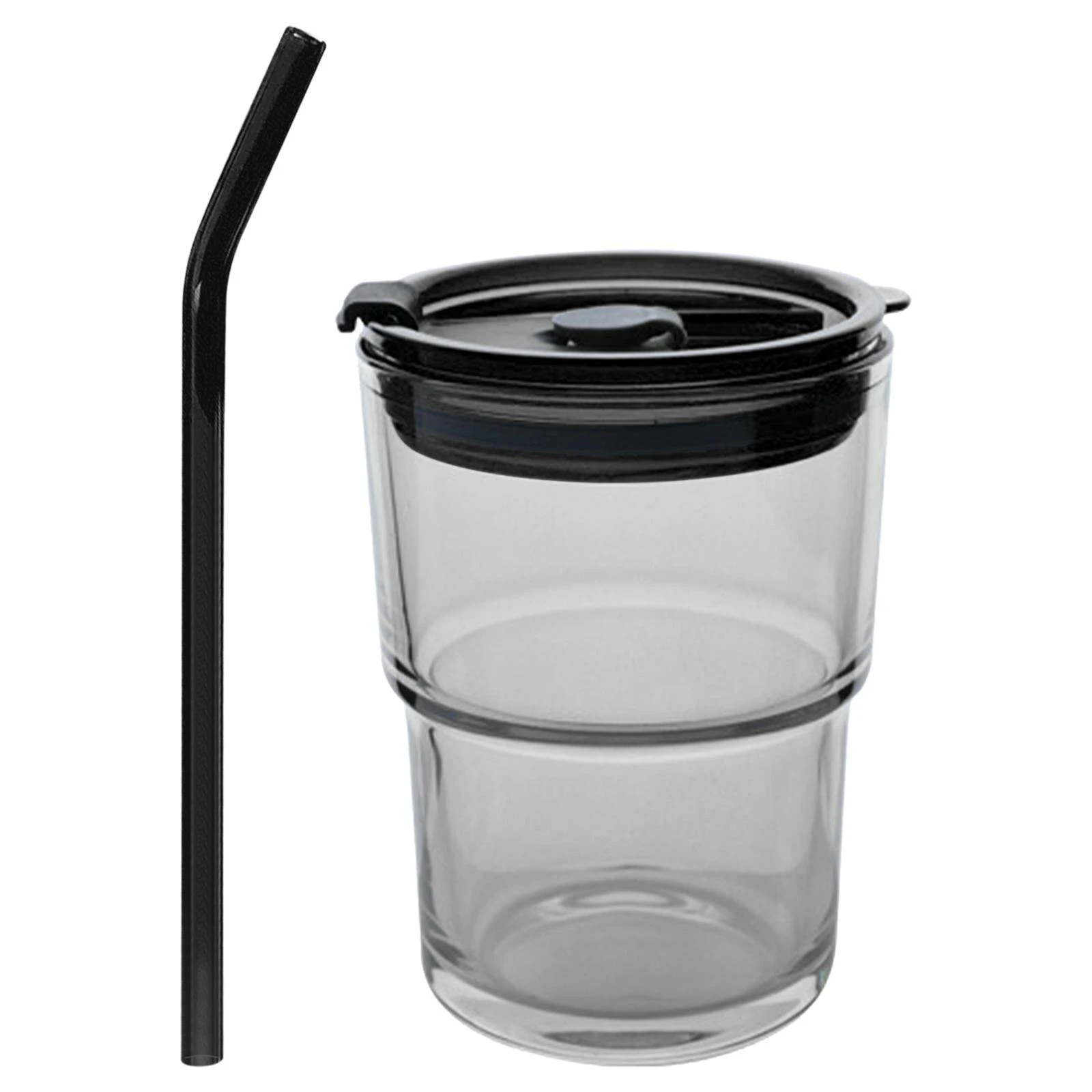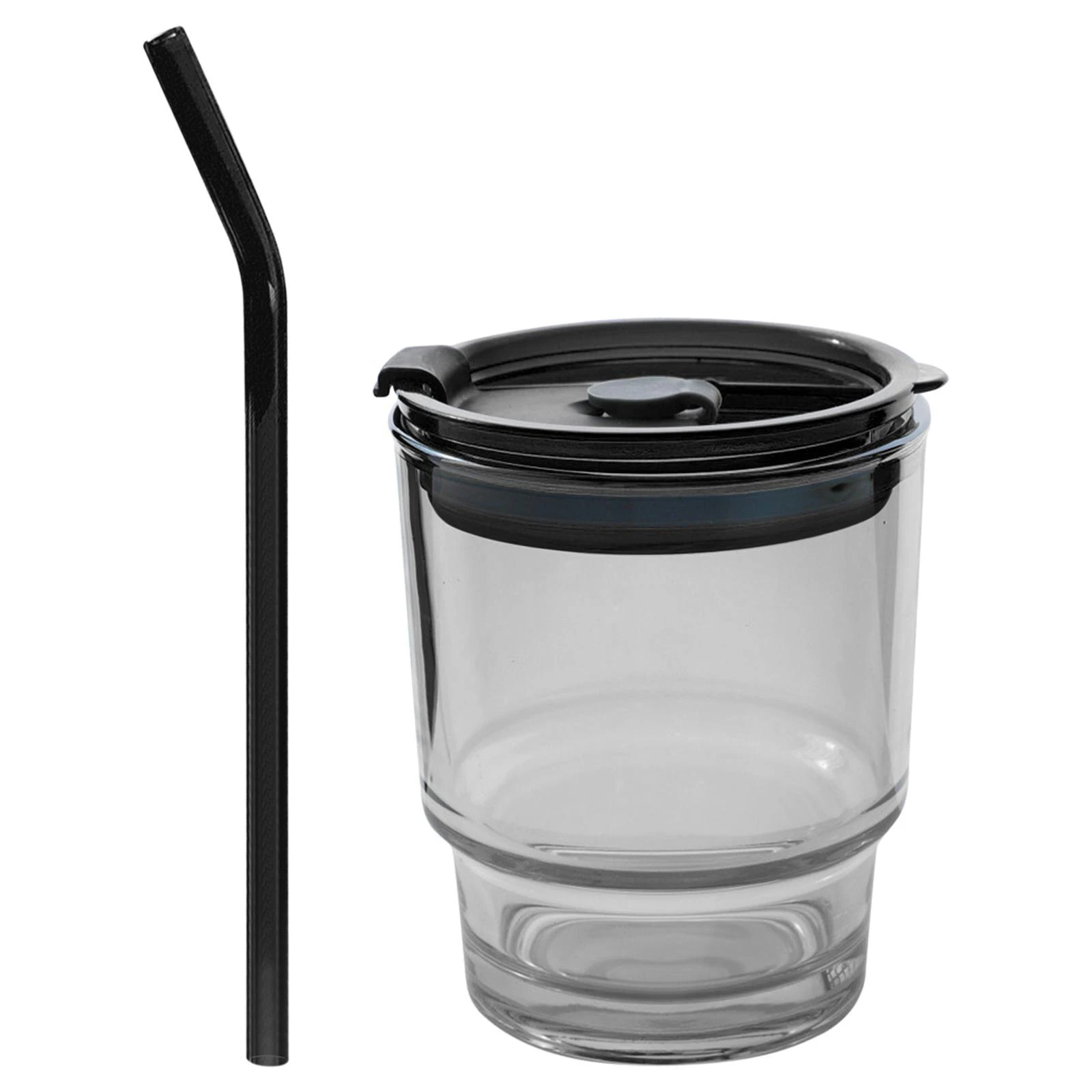 Better for the environment and a stylish solution, this transparent glass cup can be filled with coffee, tea, juice, or any other beverage to be enjoyed on the go. And that's not all, it also includes a glass straw that fits perfectly into the silicone adapter so you can choose how you enjoy your drink, with a straw, the sippy hole, or even remove the lid entirely.