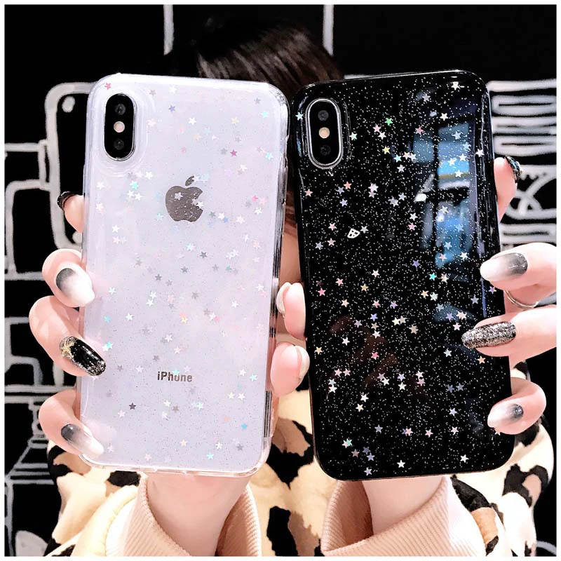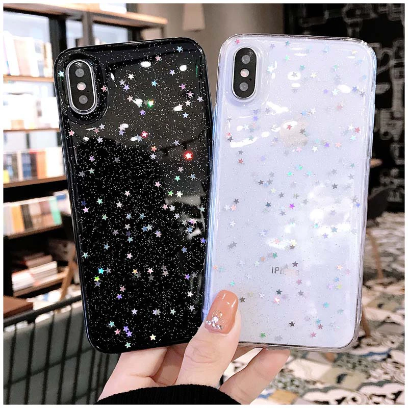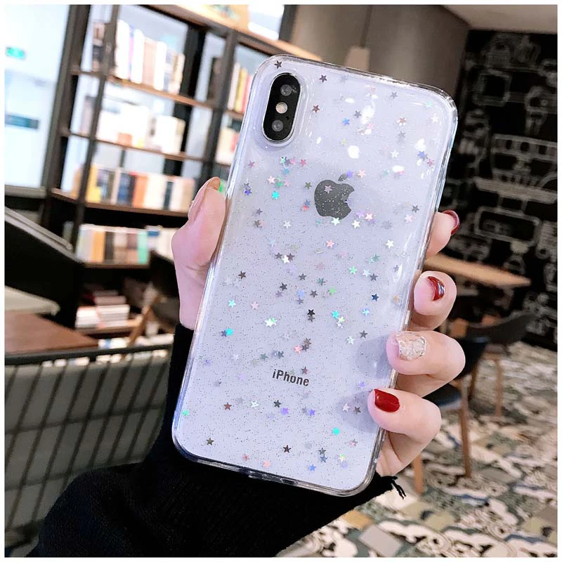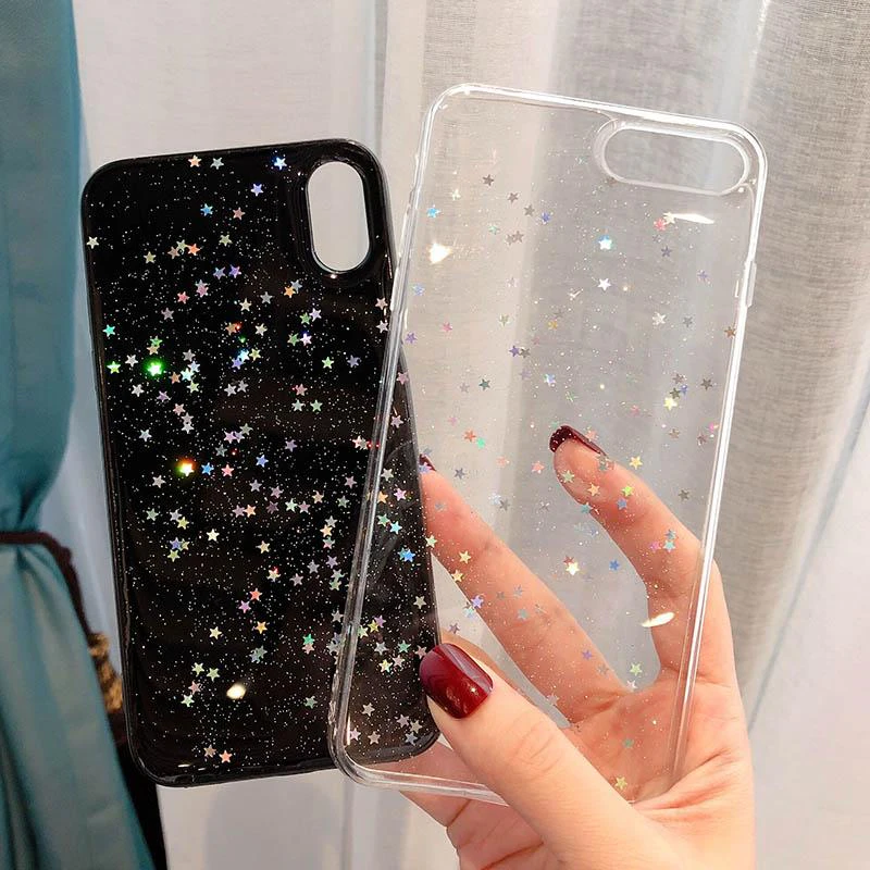 The clear design looks great with any coloured phone and is coated in glitter and iridescent stars that capture the light to add a little sparkle to your day.