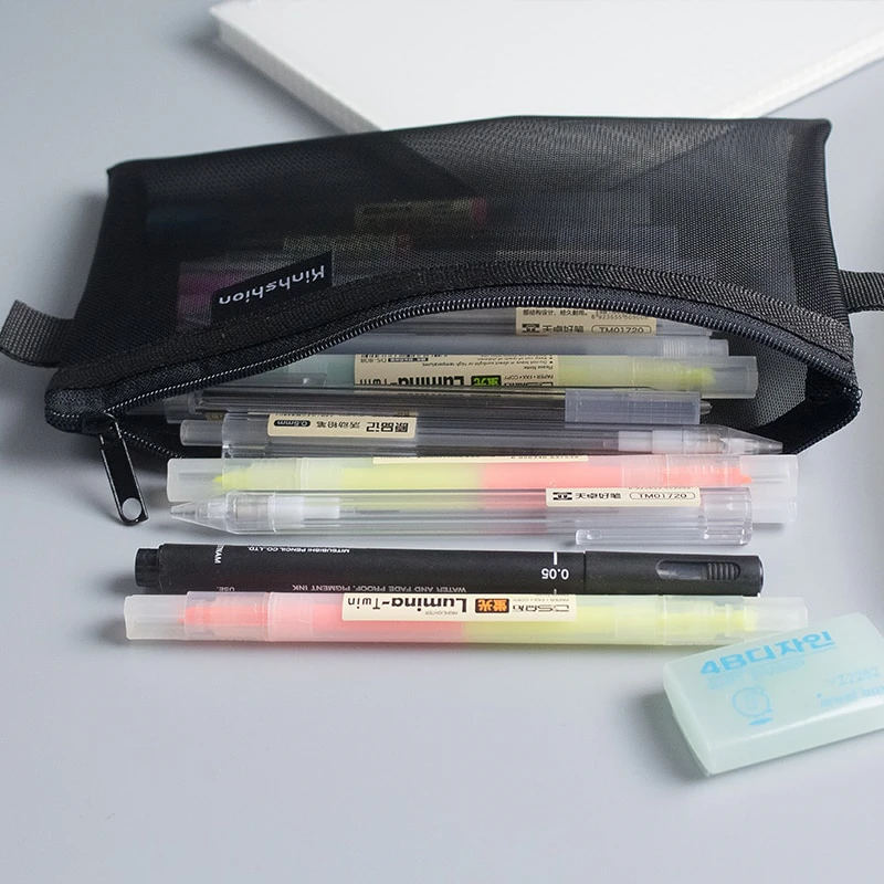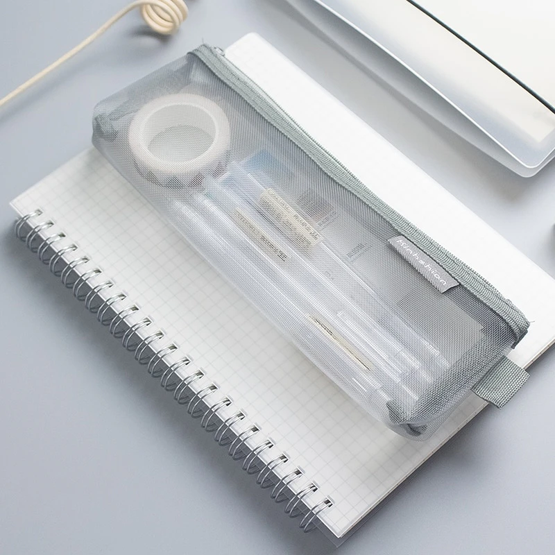 This transparent mesh pencil case is a practical and stylish solution for keeping your stationery organized. Crafted with durable mesh material, this pencil case allows you to see exactly what's inside, making it easy to find and grab your favorite pens, pencils, erasers, and more. With a spacious interior, this pencil case provides ample room for all your writing essentials, while the compact size makes it perfect for slipping into your bag or backpack. Whether you're a student, artist, or professional, this transparent mesh pencil case will keep your stationery neatly stored and easily accessible wherever you go.