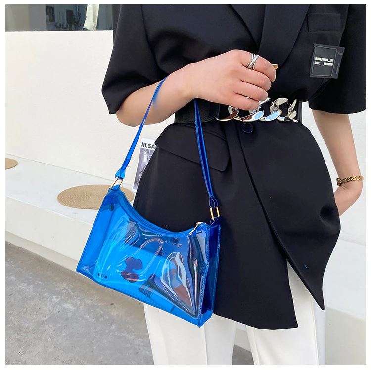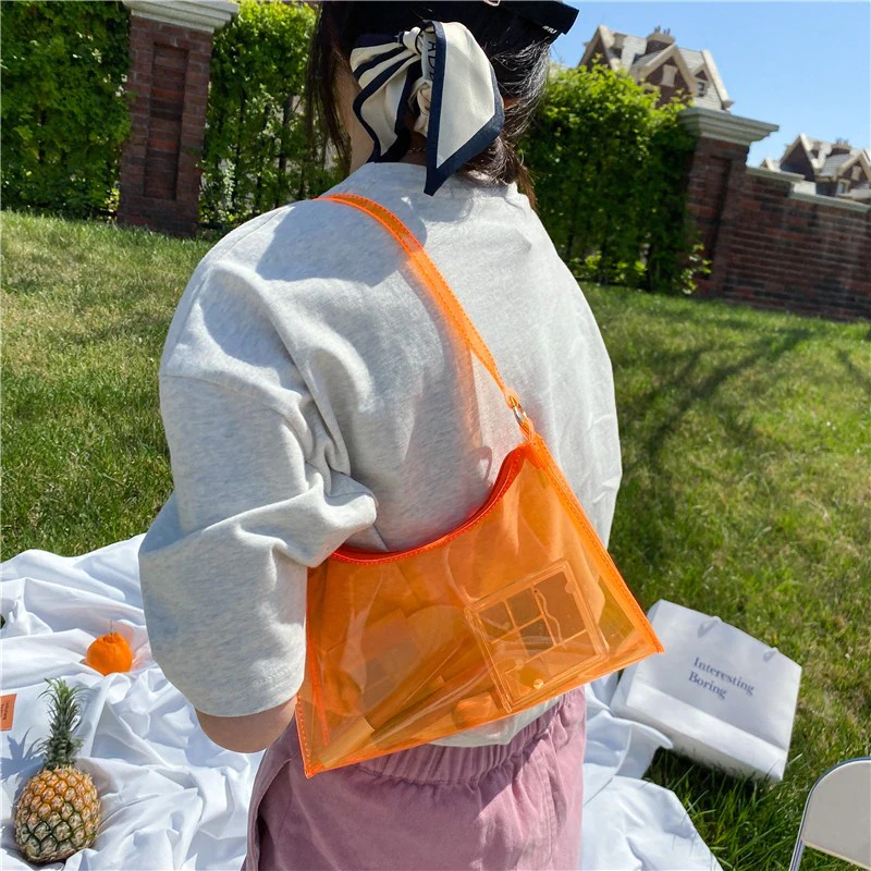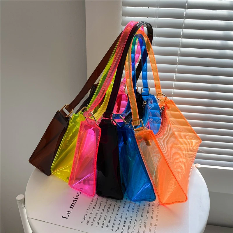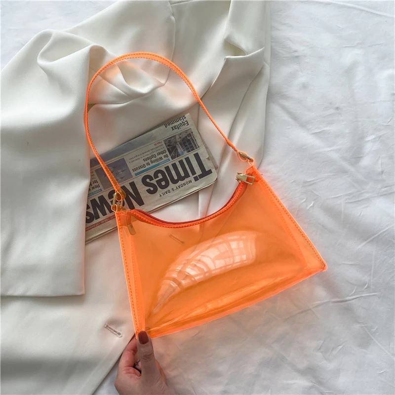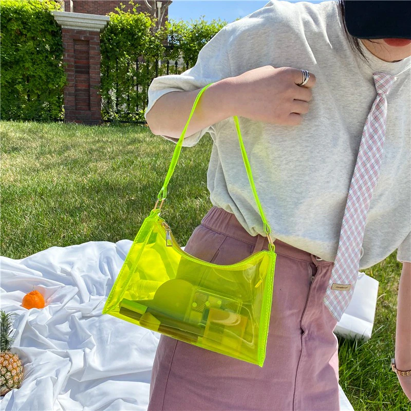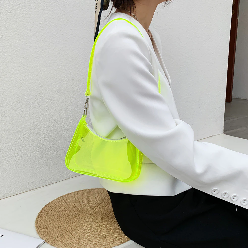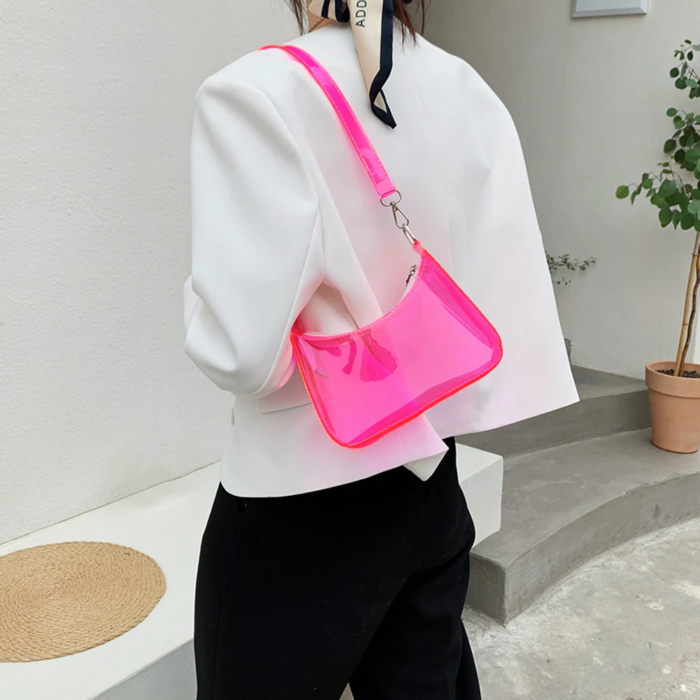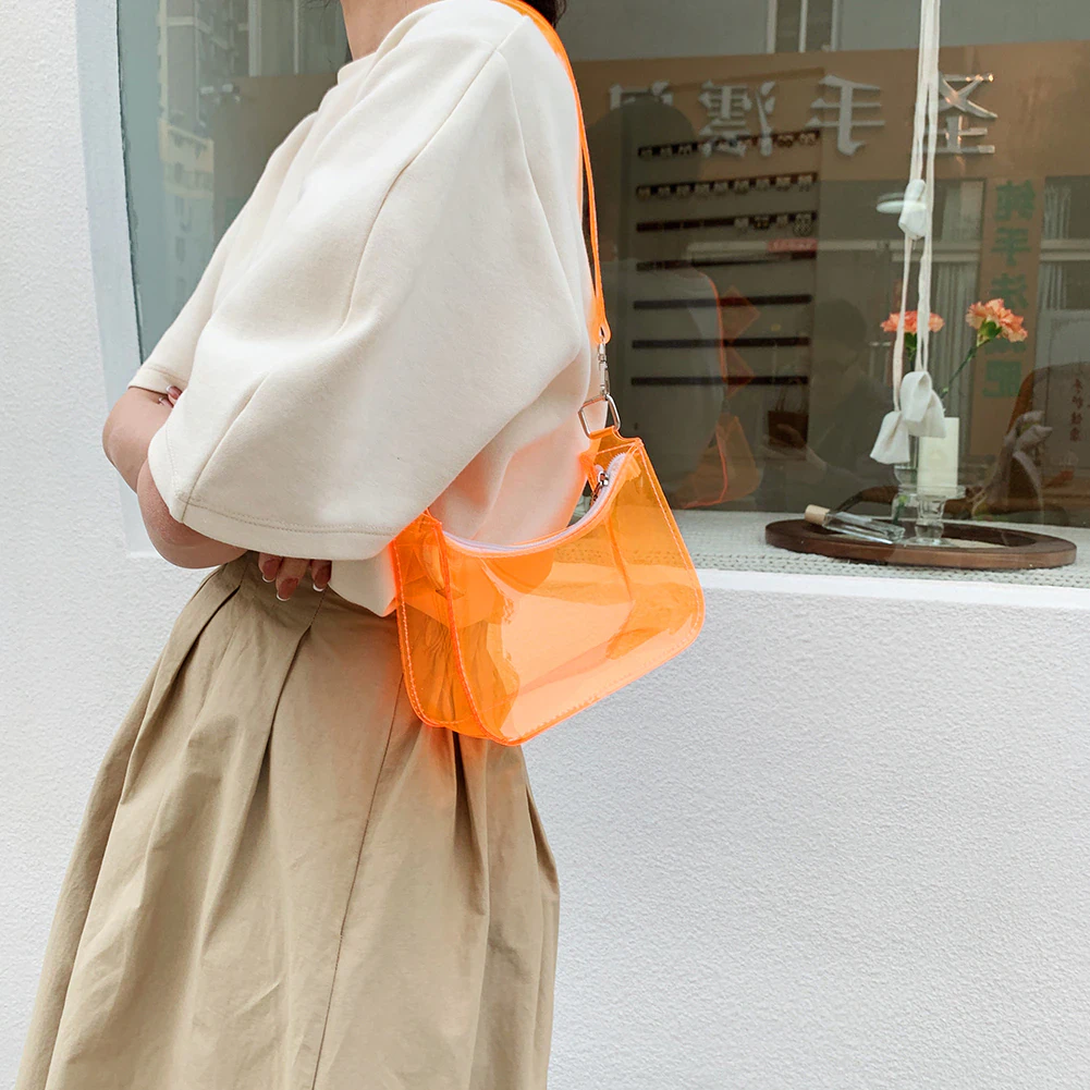 A unique and eye catching addition to your everyday outfits, this transparent neon jelly is the perfect size for your small essentials and features a zip closure to keep them secure, so long as you don't mind having them on display for everyone to see. Curate your own contents and make this bag your own by changing up what you store in it. Available in a variety of fun colours to mix and match with your outfit.