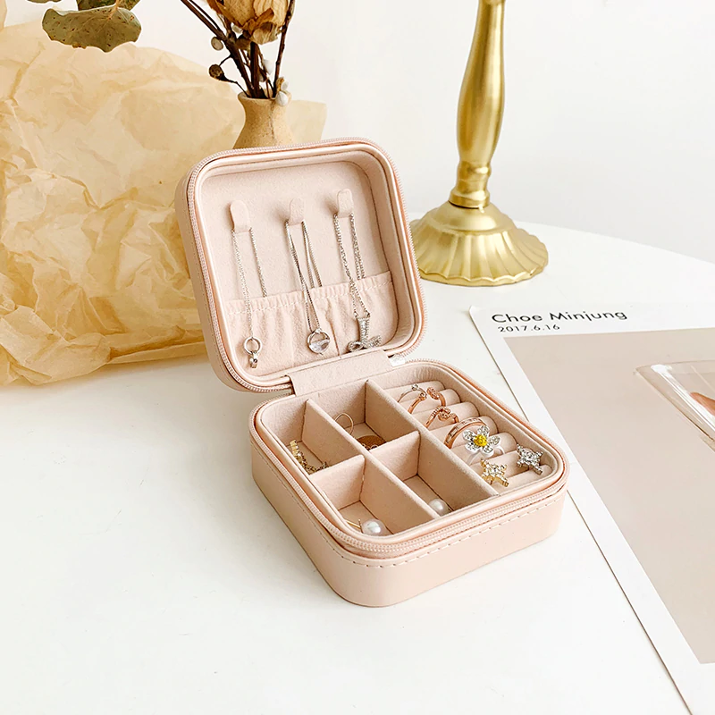 This case provides you with an easy way to keep your jewellery organized on your next vacation. With hooks that have a pocket beneath them - for your necklaces to hang on and stay tidy. There are also various slots for your rings and earrings. Featuring a discreet and sleek design, this case is easily portable. The case secures via a zip.