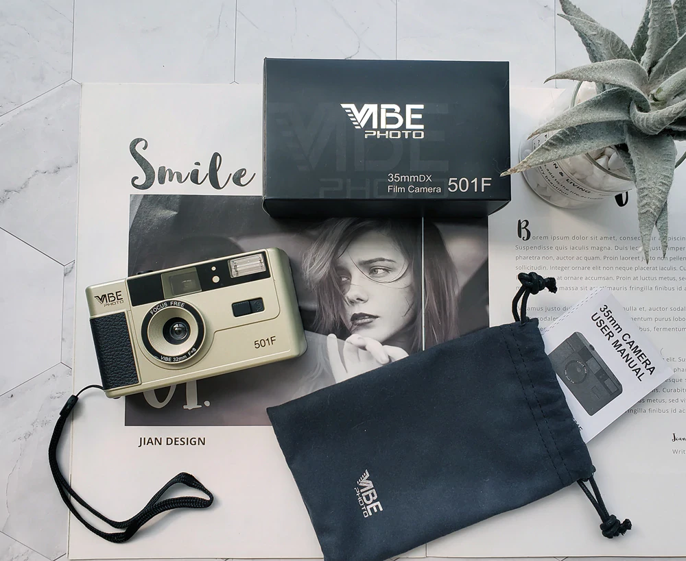 Rekindle your love for analog photography and film with this Vibe film camera.