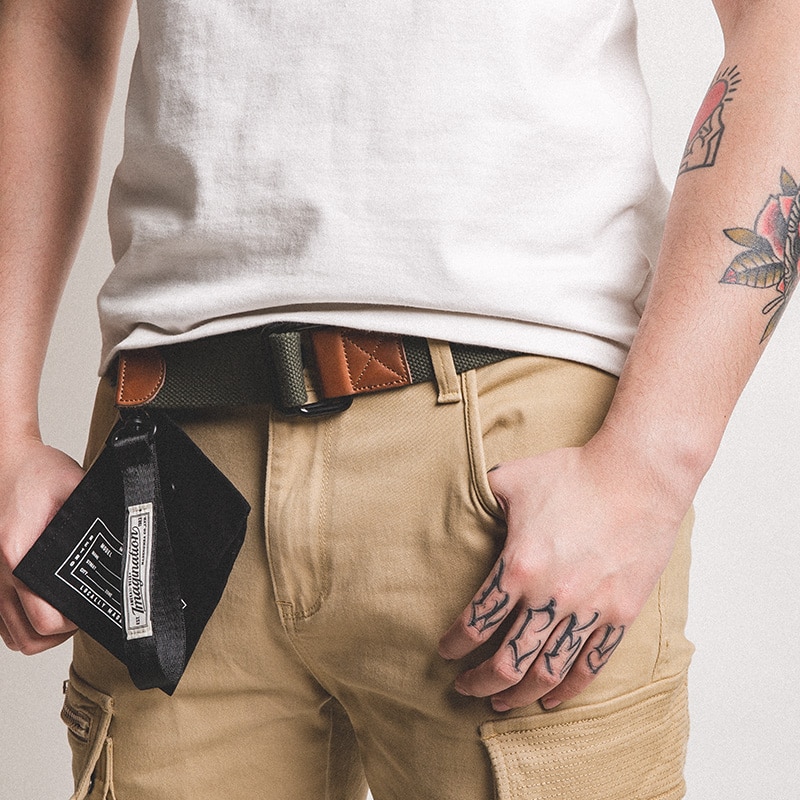 This belt is constructed using 100% cotton canvas fabric, and leather stitched on by the buckle, for a quality feel. The double D ring design on the buckle keeps the belt securely fastened - ideal for any outdoorsman in harsh conditions. A logo is stitched on, making the belt look unique. Each belt comes with a printed bag and a keychain. The belt has a 110cm length, 3.7cm width and 0.35cm thickness and the seller recommends a waist measuring 72-90cm. Available in khaki and black.