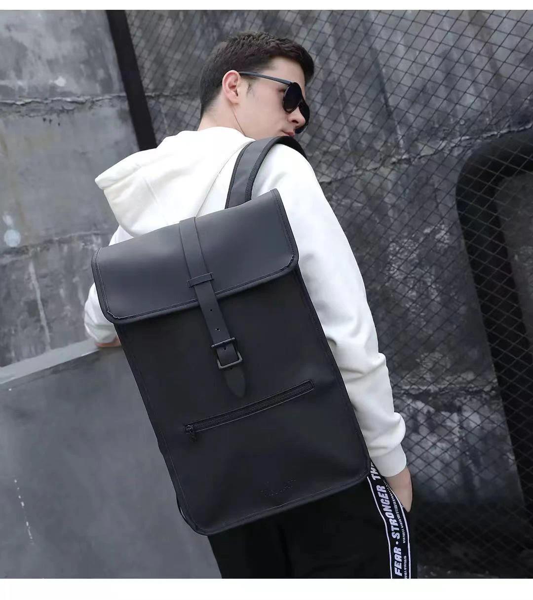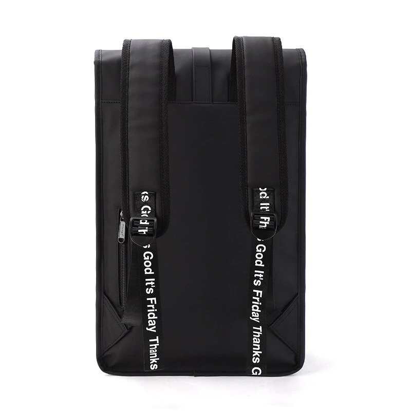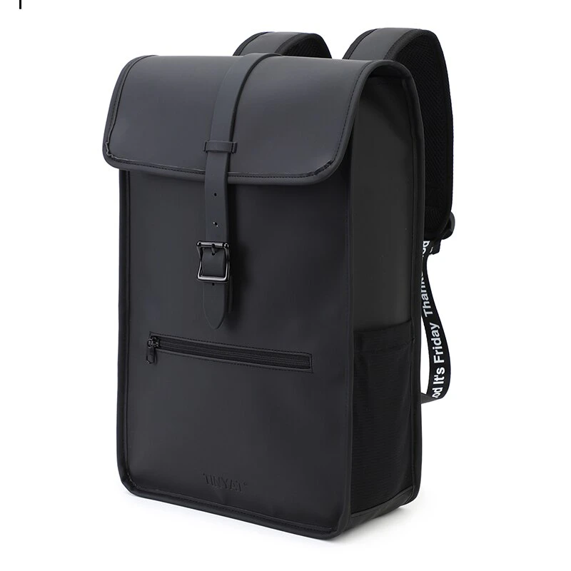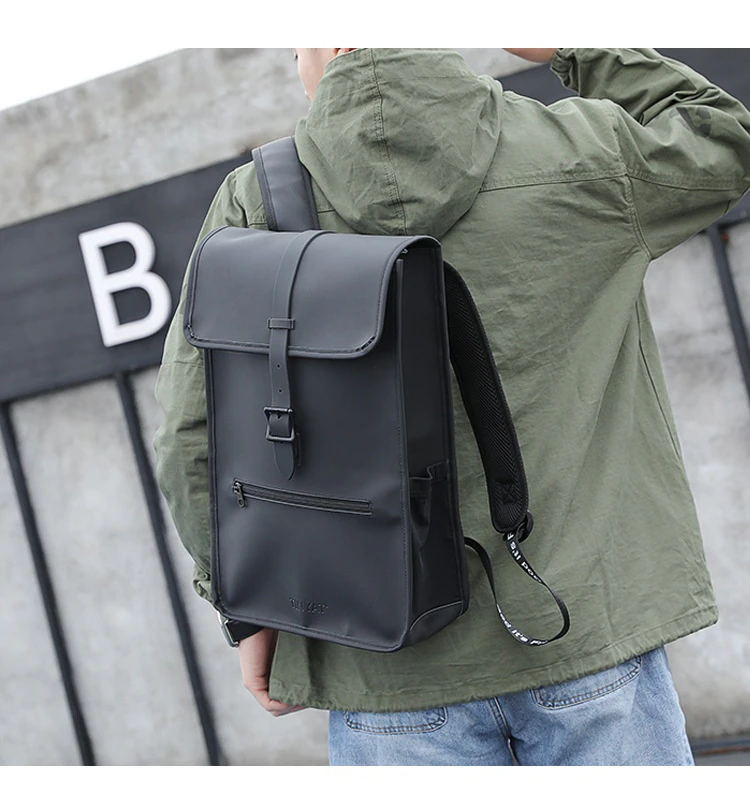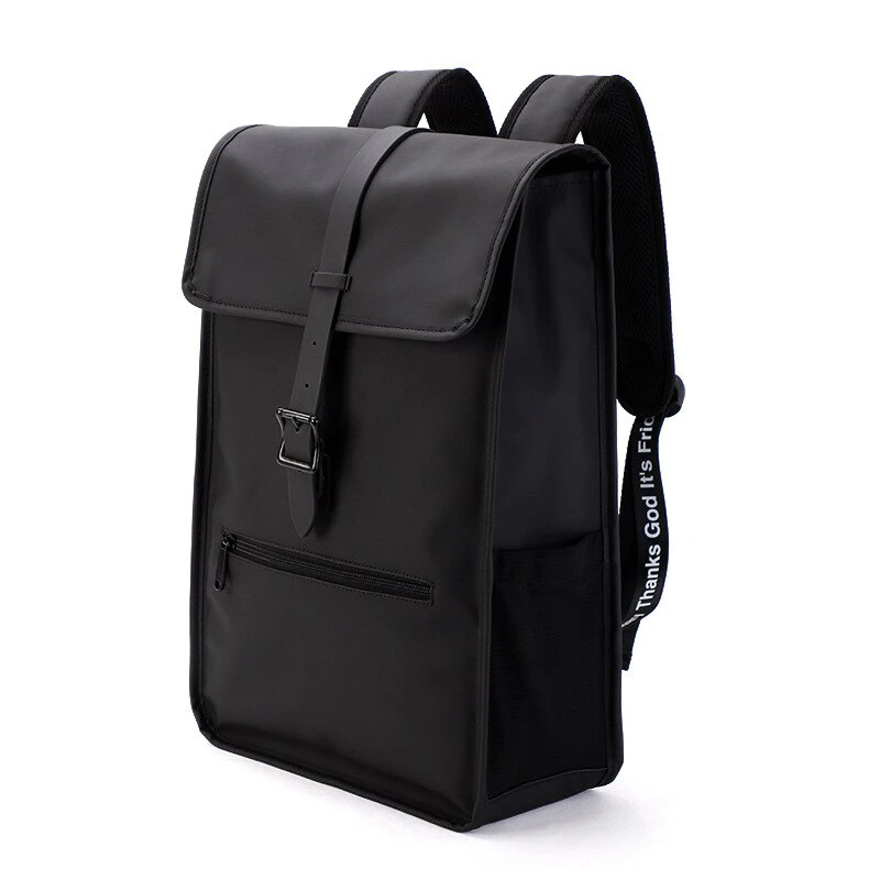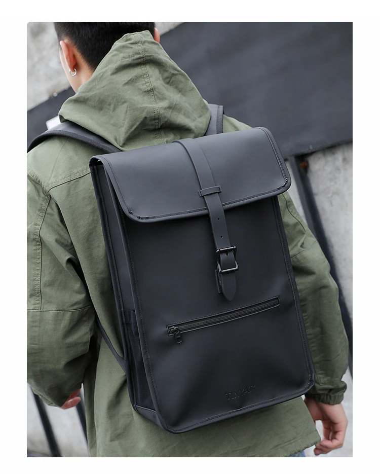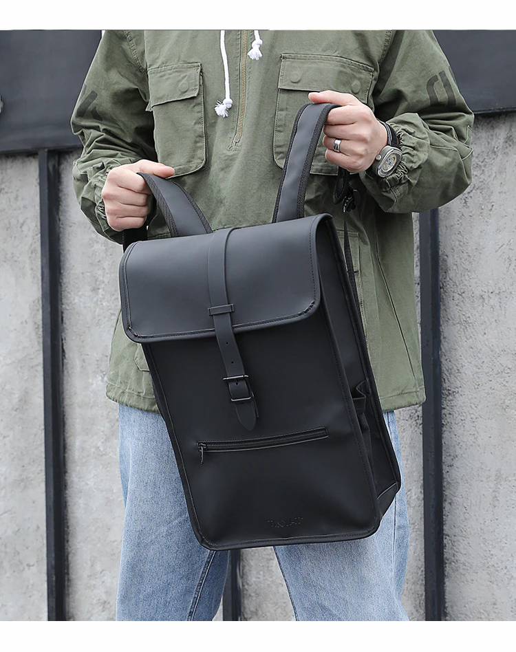 Classic yet modern, this water resistant fold down backpack has to be the perfect daily accessory. This backpack is made of water-resistant fabric with black matte finish for a modern feel. Fully lined, this minimalistic rucksack has an inside laptop pocket, a massive main compartment and a hidden phone pocket on the backside. Never worry about space again: It has enough space to fit in a 16" Macbook Pro - and more. It comes with buckle details and magnetic button closures to keep your things secure, along with adjustable straps so you could wear it in comfort.