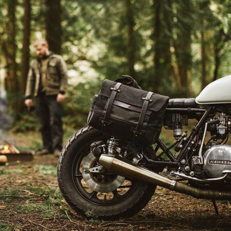 Additional travel storage won't be a problem anymore with this waterproof motorcycle side bag. It's made of oil canvas so your belongings will be protected from rain when riding to work or going on an adventure tour. The bag has multiple internal zipped compartments for different-sized items. You can attach a strap to it so you can use it as a body bag. It also has a non-descript subtle design that's perfect if you're going after a rugged look. If you are looking for a good and durable bag that won't hurt your style, this is the one. Fixing straps sold separately.