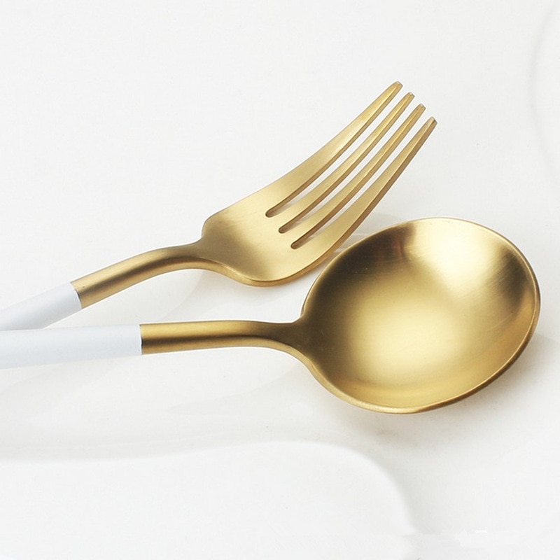 Upgrade your dining experience with this elegant white gold stainless steel dinner cutlery. The beautiful white and gold design will enhance the look of any table setting, while the durable construction ensures that it can withstand everyday use. Whether you're hosting a fancy dinner party or enjoying a casual meal with friends and family, this unique cutlery will add a touch of sophistication to your dining experience. The cutlery is available individually or as a 4 piece set, making it easy to customize your order to your specific needs. Order now and elevate your dining experience to the next level!