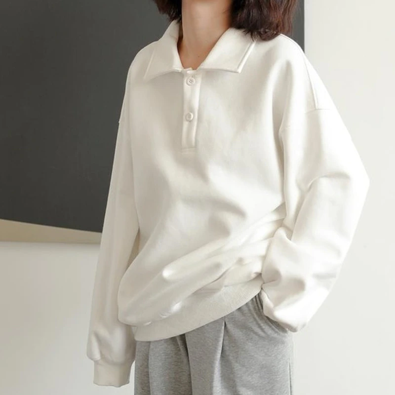 A basic and stylish staple to add to your wardrobe, this white polo sweatshirt pairs well with any outfit and style.