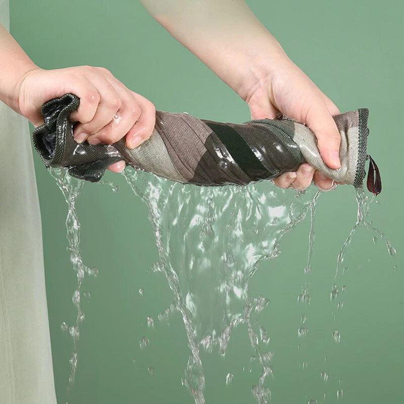 One side features a green plaid print and the other side is plain green, plush and tufted, perfect for drying dishes quickly and effectively, drying hands, wiping up spills and liquids, disinfecting countertops, holding hot dishes and drying off herbs and vegetables.