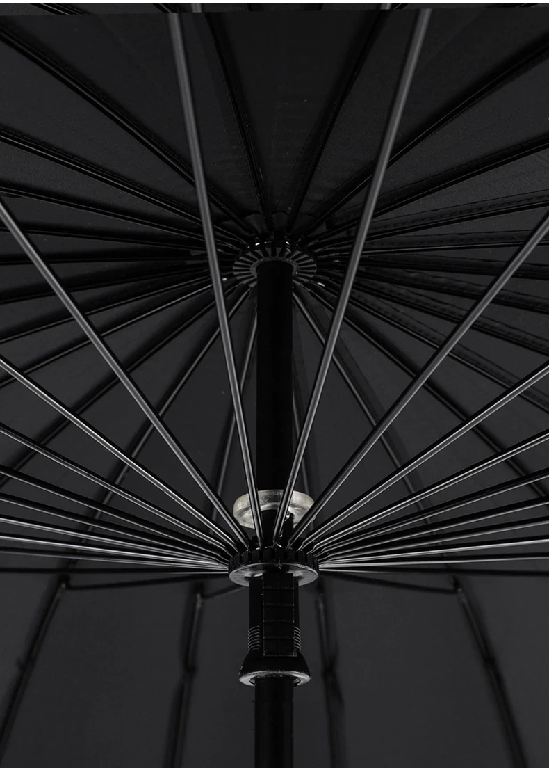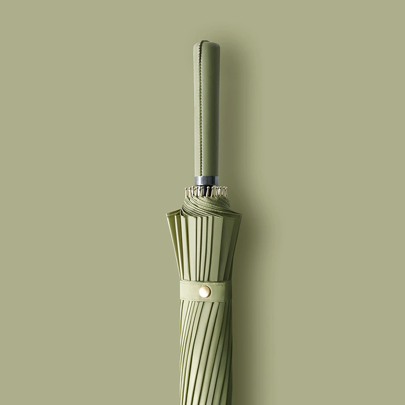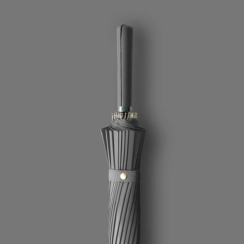 Large enough to comfortably shield 2 people from the rain, this durable umbrella features a strong fiberglass structure covered with water repellant pongee fabric and a leather handle so you can hold it comfortably in strong winds.
