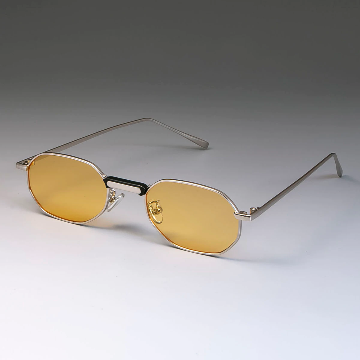 Perfect sunglasses to add to your collection for summer. With UV400 protection, you'll be taking care of your eyes while looking trendy at the beach or at a festival. Constructed with alloy, colored wire frames and acrylic lenses. The slim, vintage lenses and unique nose bridge add the right amount of eccentric and classy. The glasses' frame is 14cm wide, and lens 2.5cm high.