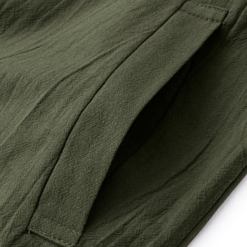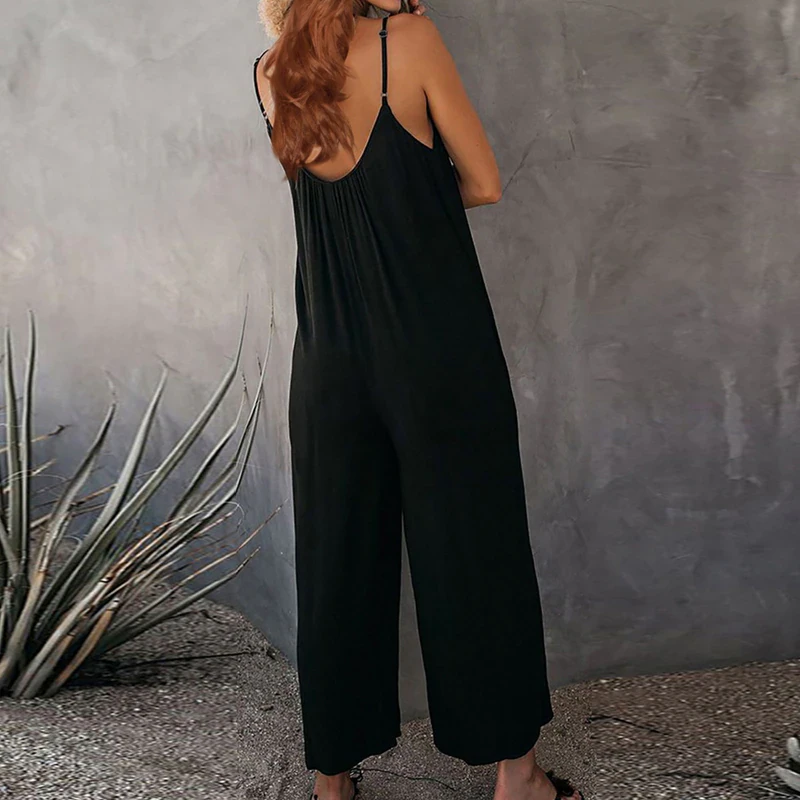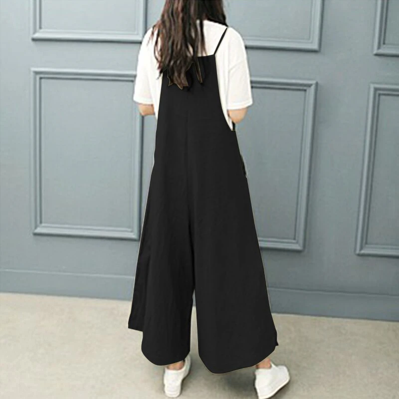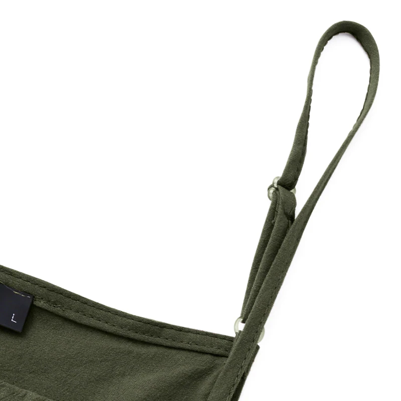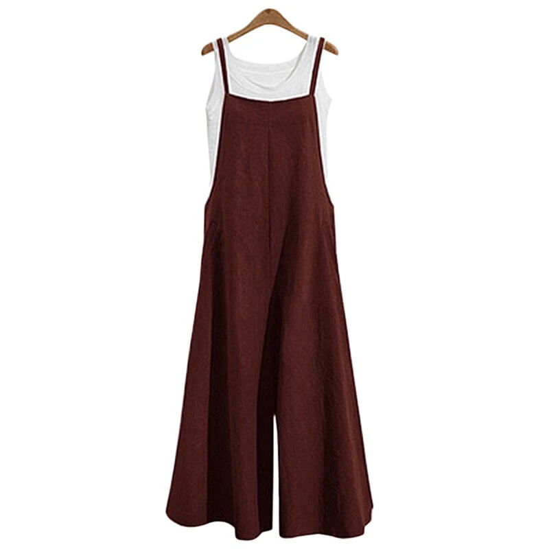 This breezy linen jumpsuit is perfect for a sunny day! Effortless and chic, this version has narrow, adjustable shoulder straps and two pockets in the front. Available in green, navy, and black to best suit your wardrobe.