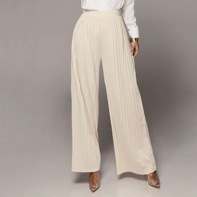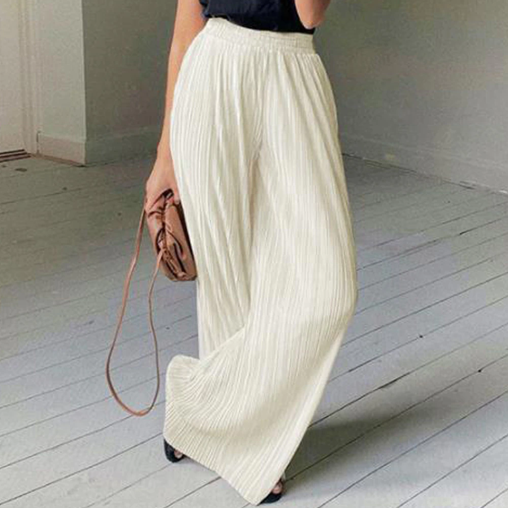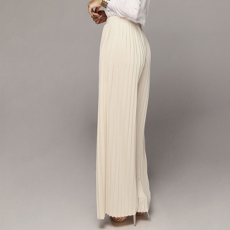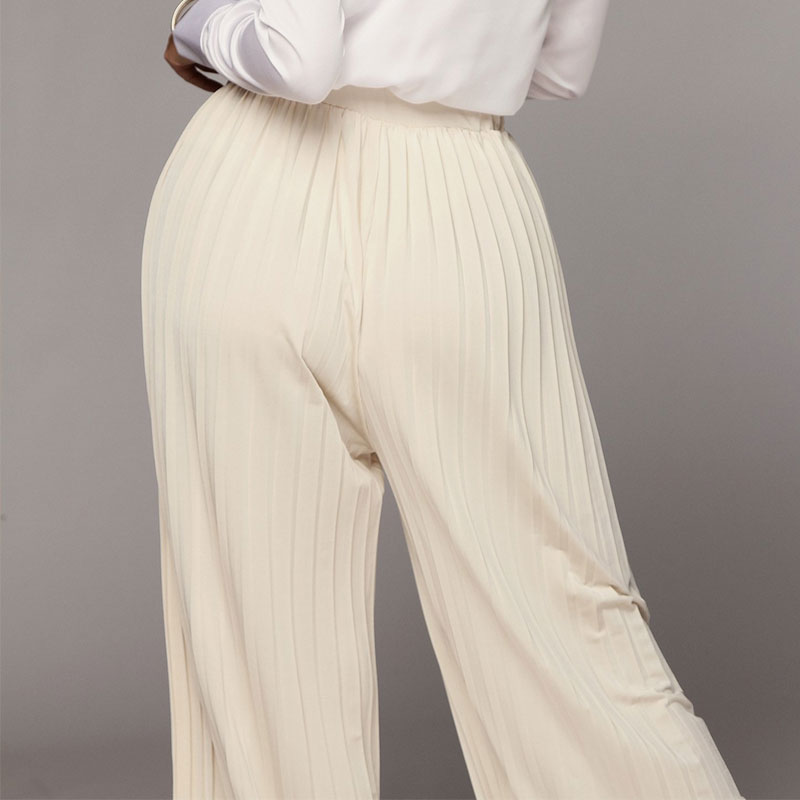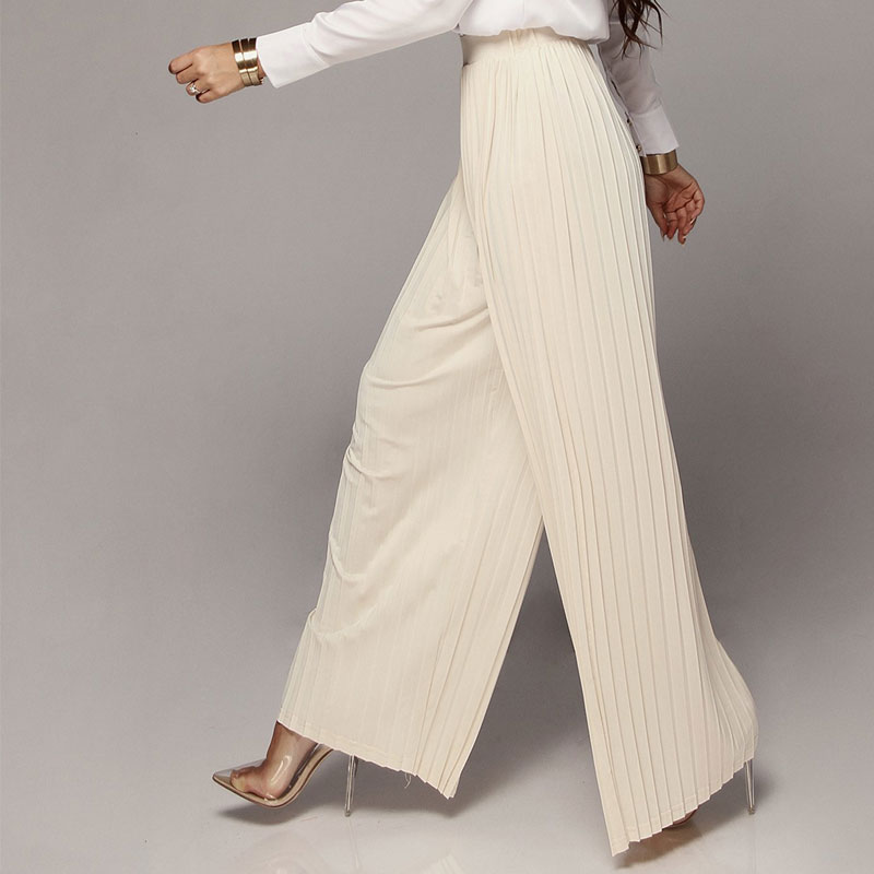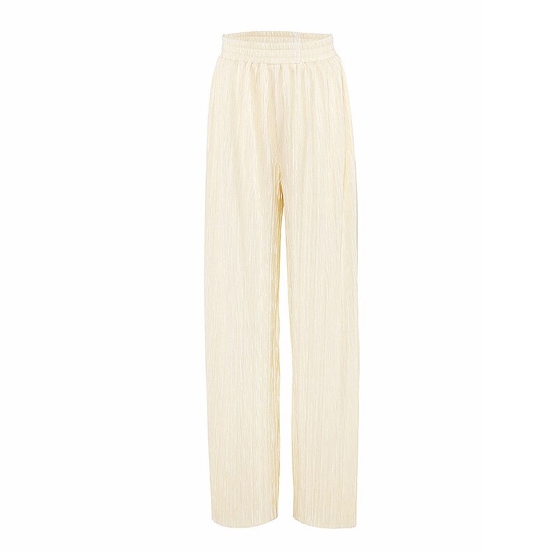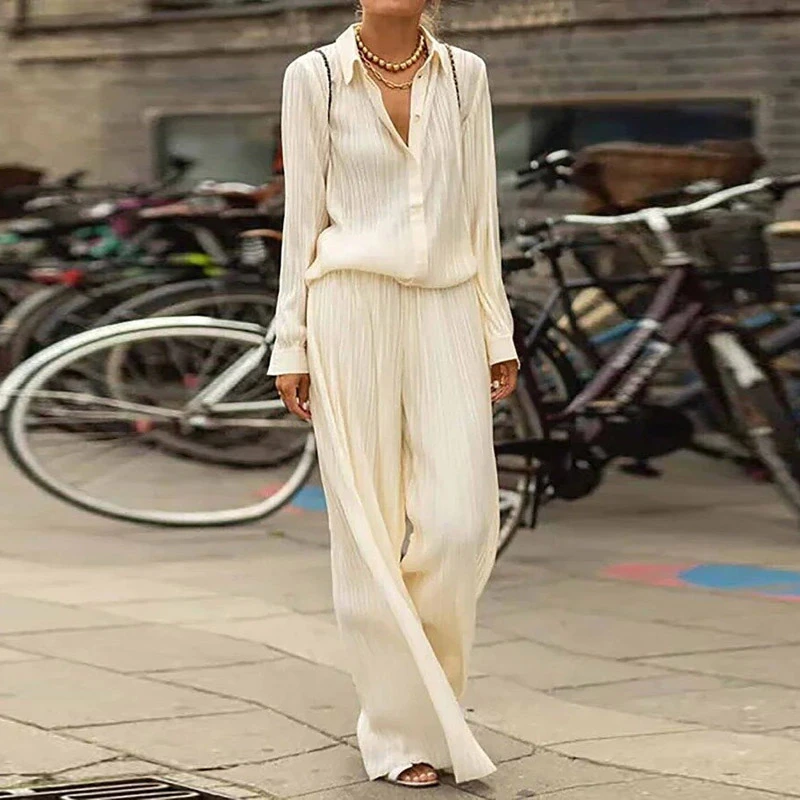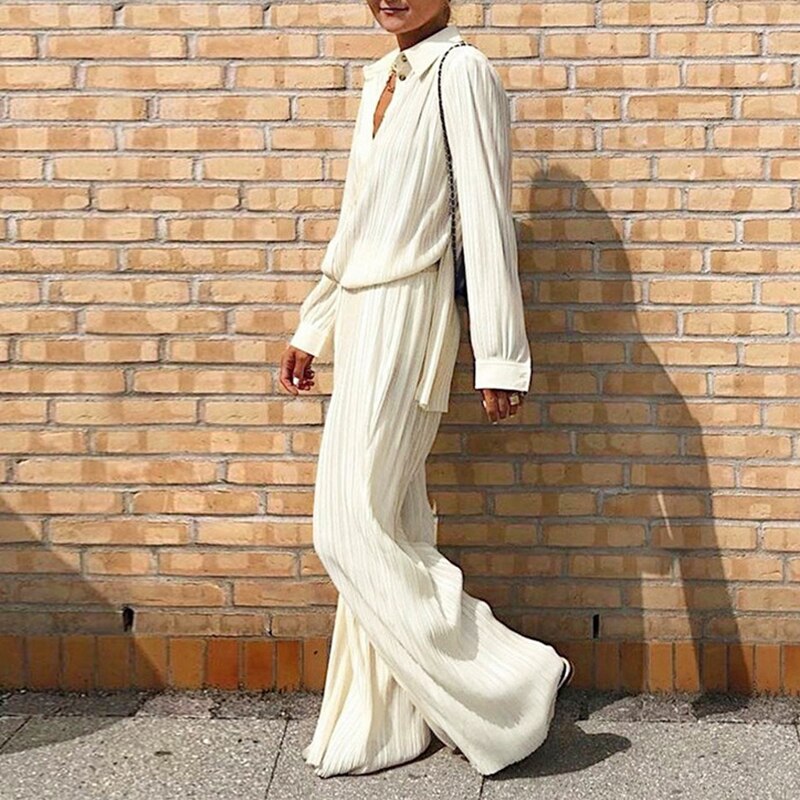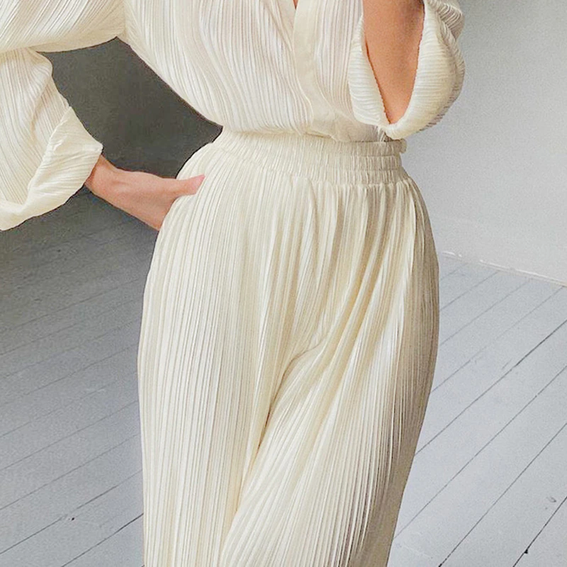 Make this pleated matching set an essential part of your wardrobe. Composed of button-up shirt and wide full-length pants, this pleated set can either be mixed and matched with other pieces or keep it basic as is. Lots of ways to wear this and heaps of looks to pull off using this set: style it up with large gold earrings or wear it with open-toed string stilettos for the effortless chic, or put on a wide-brimmed hat as you go for a stroll at the beach. Made of breathable polyester fabric, it's designed with both comfort and style in mind - perfect to wear for any occasion.