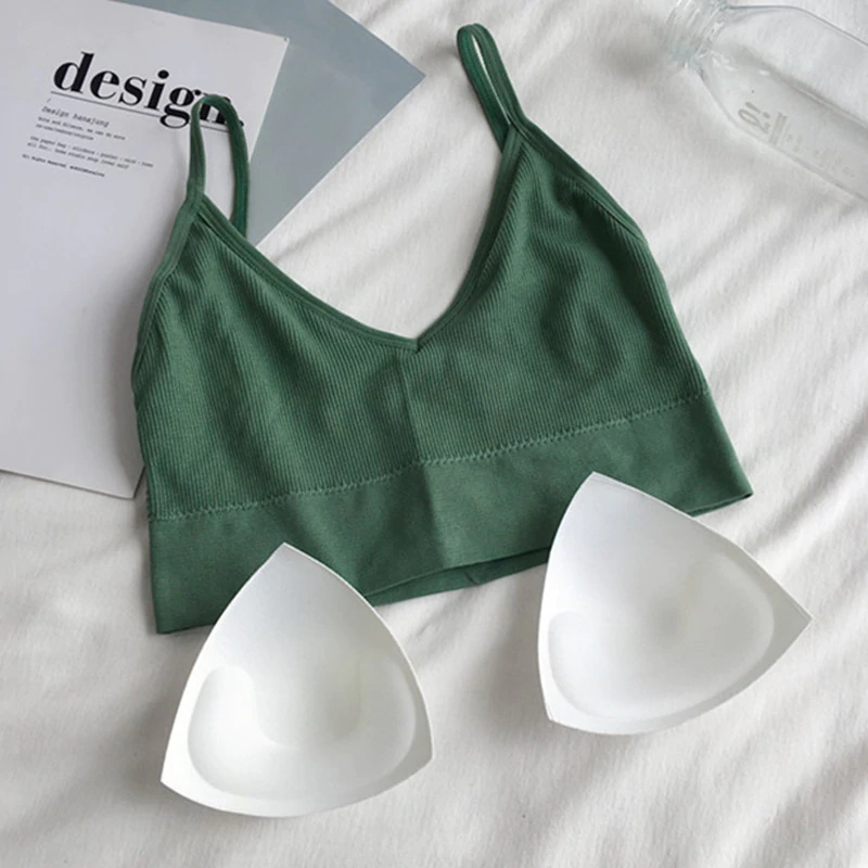 Constructed from lightweight and breathable polyester with a seamless ribbed design, spaghetti straps and removable padded cups.