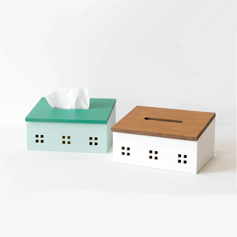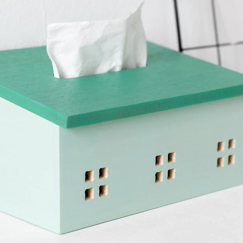Need a home for your tissues? We literally have just the thing! This lovely wooden tissue box is a simplistic and minimalist way to display your tissues. Simply lift up the roof (or lid) and place your favourite tissues inside.