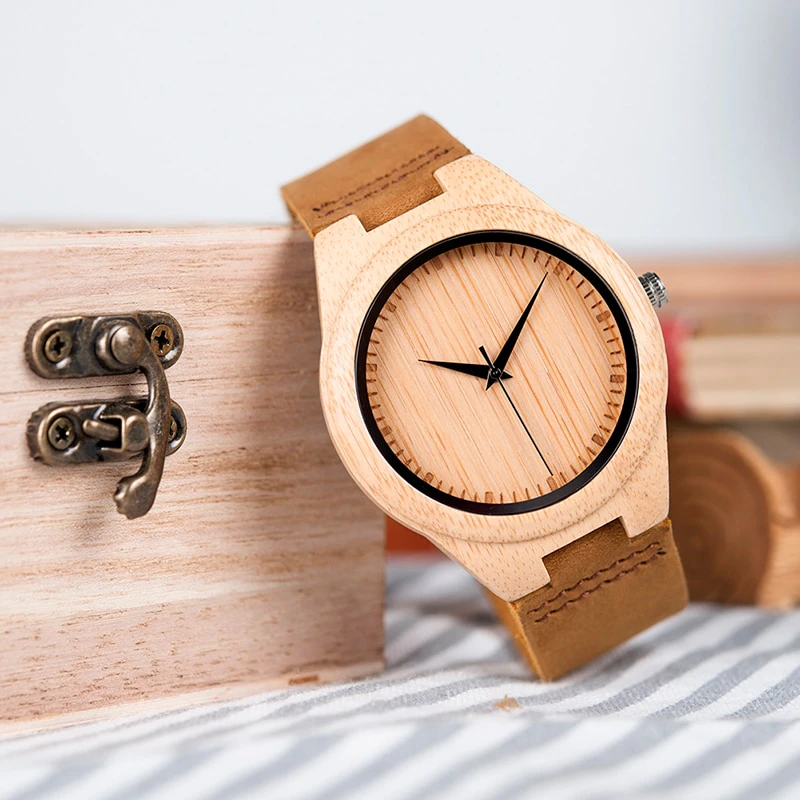 Crafted with a unique blend of wood and leather, this watch is a stunning addition to any wardrobe. The warm wooden tones complemented by the rich leather strap create a stylish and timeless look. The watch face is simple yet elegant, making it easy to read at a glance. With its adjustable strap, this watch offers a comfortable fit for any wrist size. Perfect for both casual and formal occasions, this watch is a must-have accessory for anyone who appreciates classic style and quality craftsmanship. Upgrade your watch collection today with this beautifully designed wood leather watch.