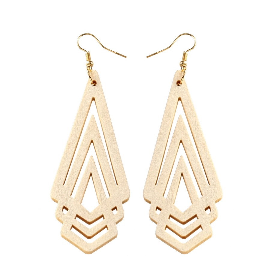 These Wooden Geometric Drop Earrings effortlessly combine nature-inspired beauty with modern design. Crafted from natural wood, these earrings boast a warm and earthy feel that complements any outfit. The geometric design adds a touch of contemporary style, making these earrings a versatile accessory for both casual and formal occasions. With their easy-to-wear drop style, these earrings are comfortable and lightweight, ensuring all-day comfort without sacrificing style.